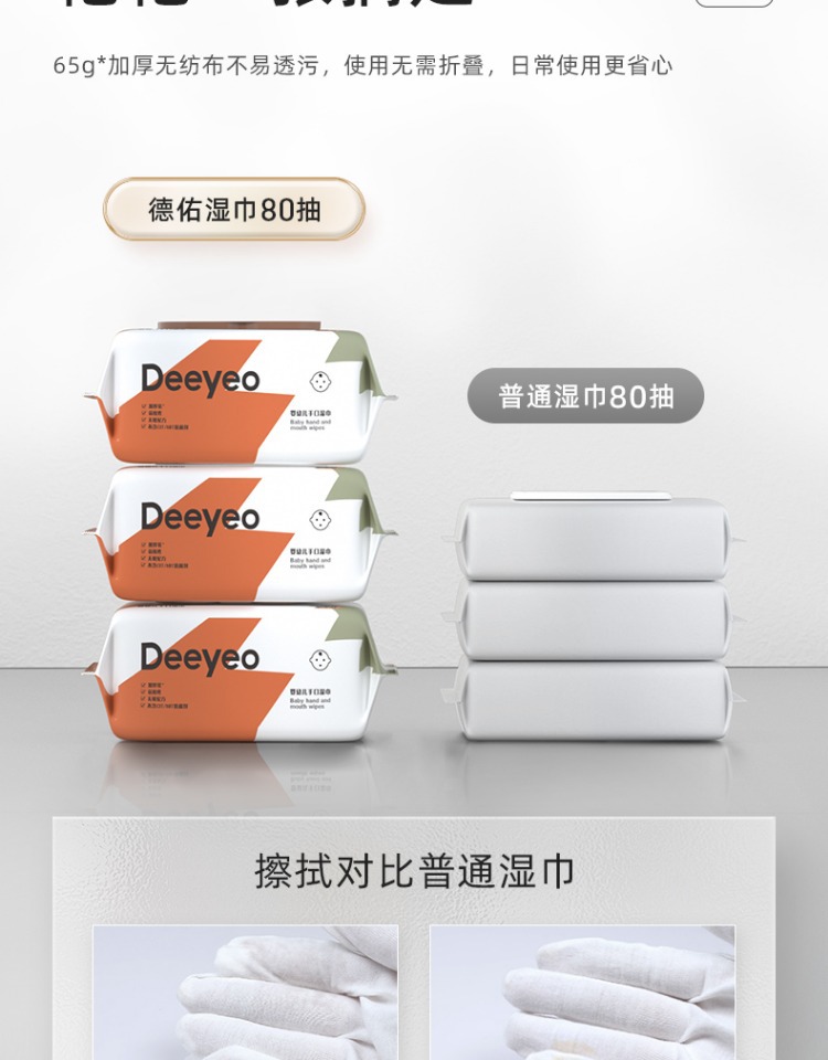 Deyou baby hand mouth toallitas húmedas baby toallitas húmedas 80 sorteos * 5 paquetes de toallitas húmedas ropa familiar