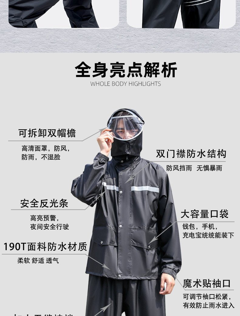 Impermeable y pantalones de lluvia conjuntos de todo el cuerpo a prueba de lluvias torrenciales vehículos eléctricos divididos para llevar para hombres y mujeres ropa de pesca de ciclismo reflectante e impermeable