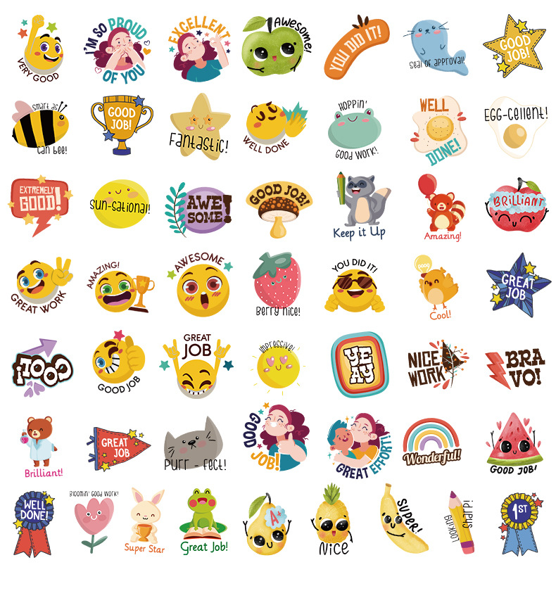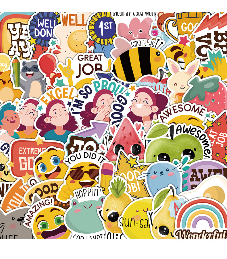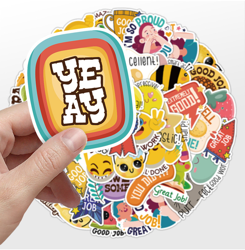 50 pegatinas de recompensa para estudiantes, cajas de papelería, pegatinas decorativas por computadora, pegatinas de papelería creativas impermeables, pegatinas de dibujos animados