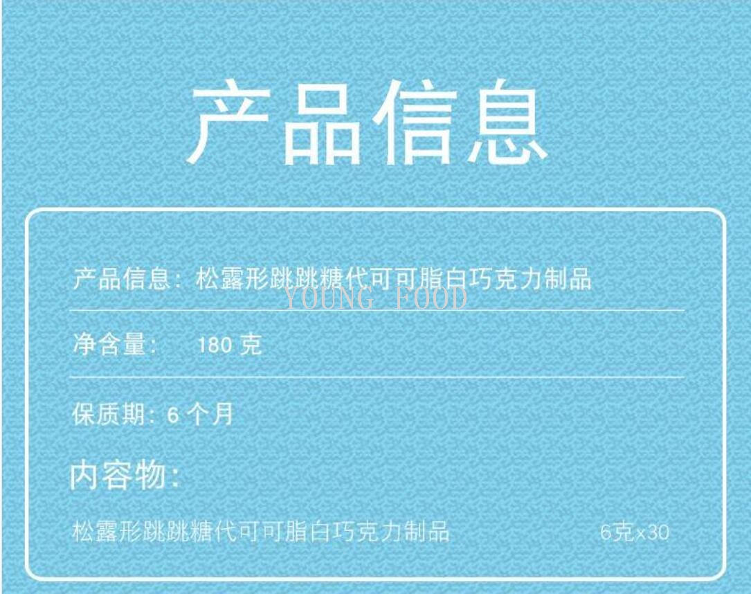 Venta al por mayor de alimentos de ocio, dulces, bocadillos, azúcar de salto en forma de rocío en lugar de productos de chocolate blanco de manteca de cacao 180 gramos