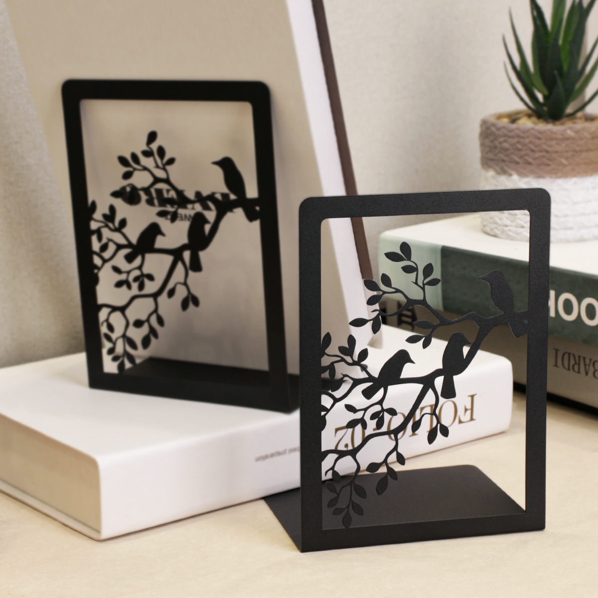 2pcs Black Metal Decoration bookstore Creative Branch Pattern design document es adecuado para escritorios y escritorios de estudiantes.