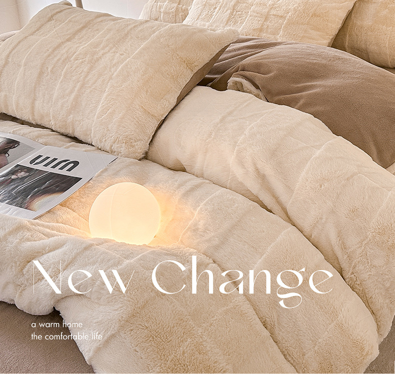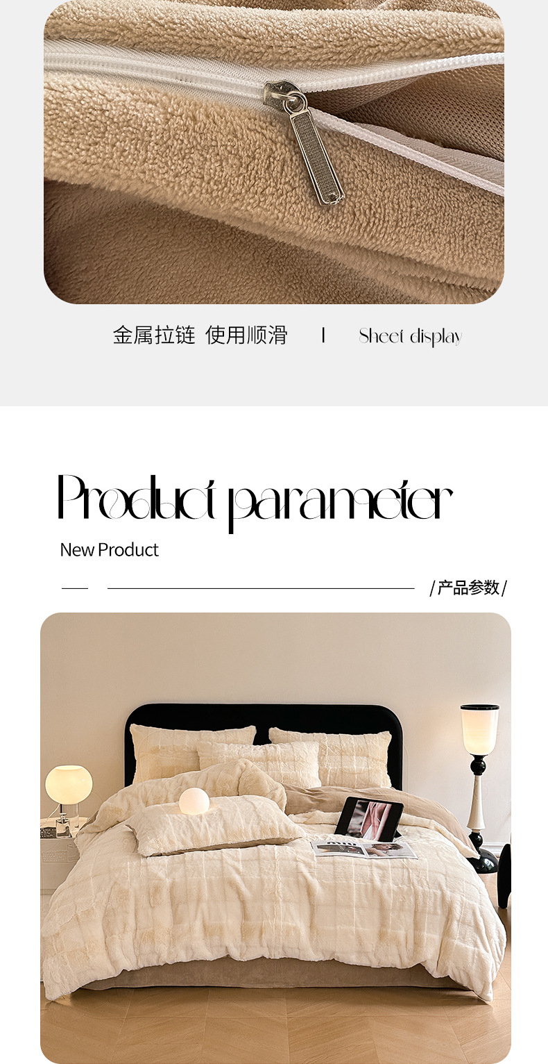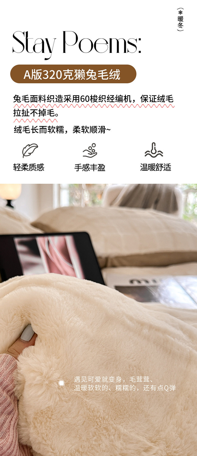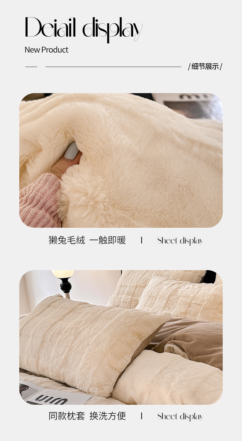 El corazón de la niña de clase a se mantiene caliente en invierno con un juego de edredones de conejo de cuatro piezas, sábanas y ropa de cama de terciopelo de leche engrosada en ambos lados.