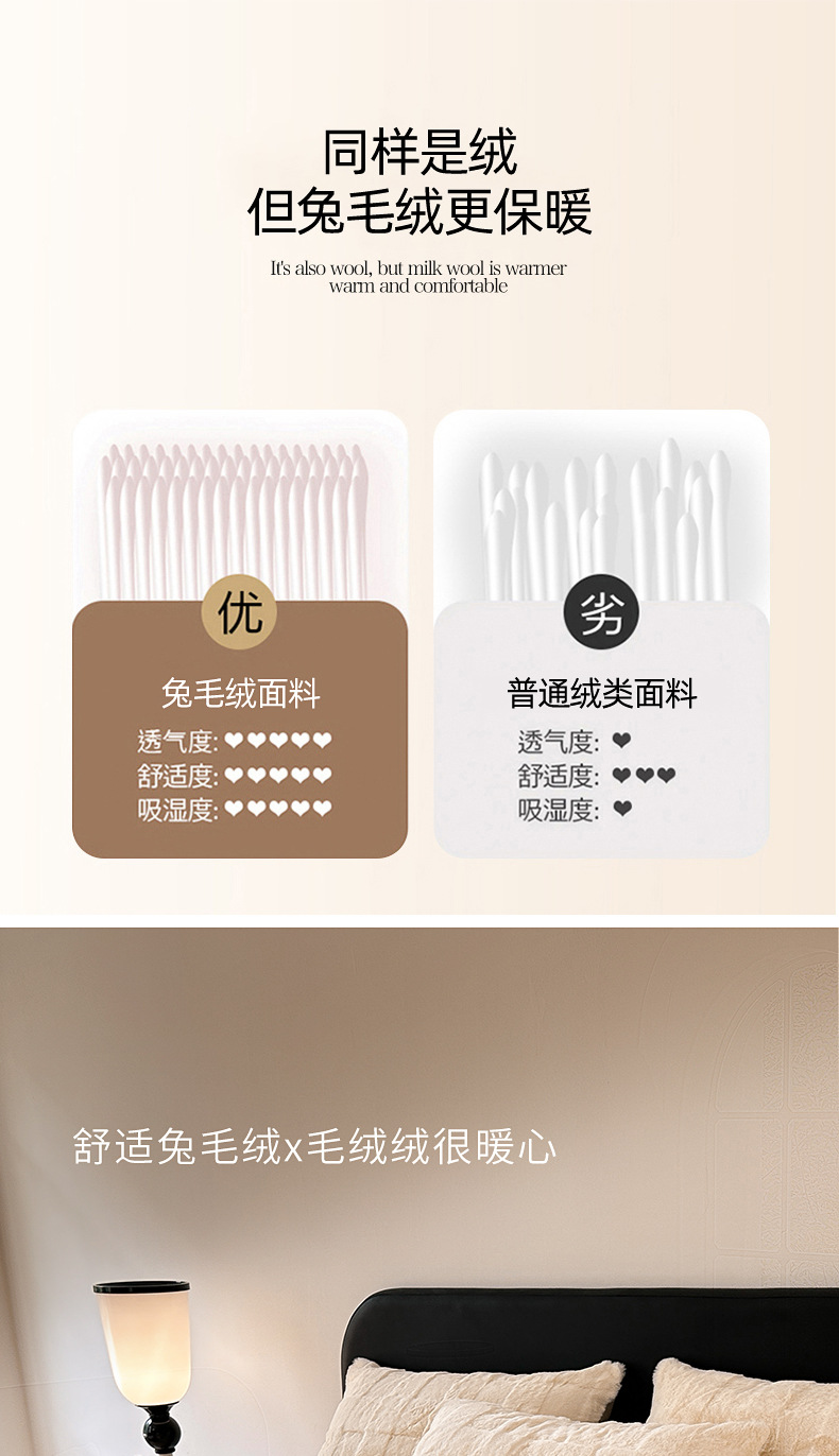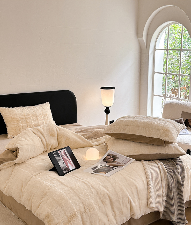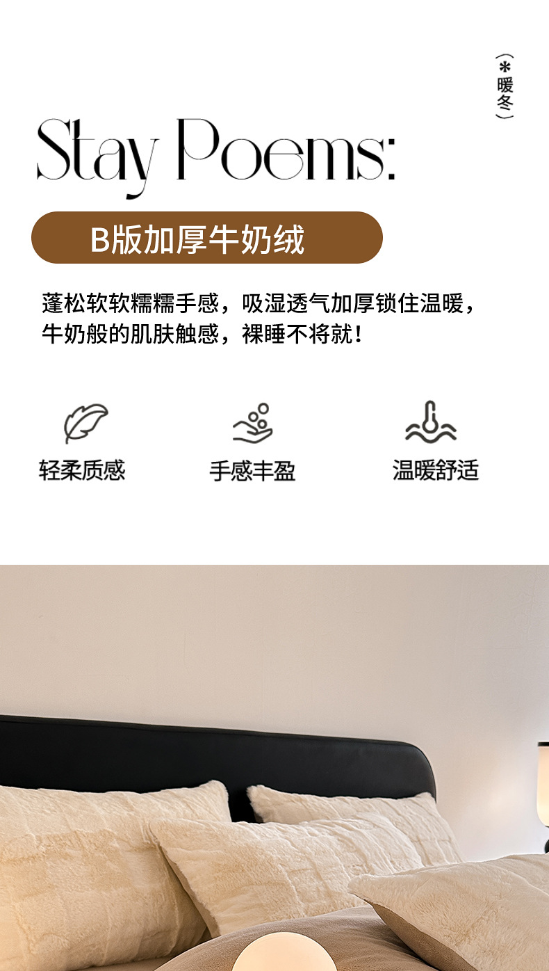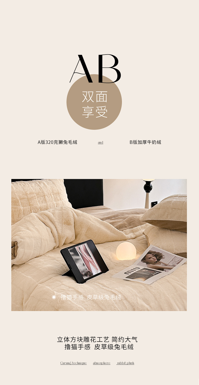 El corazón de la niña de clase a se mantiene caliente en invierno con un juego de edredones de conejo de cuatro piezas, sábanas y ropa de cama de terciopelo de leche engrosada en ambos lados.