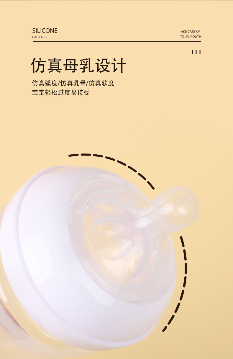 El fabricante vende directamente chupetos de silicona para bebés recién nacidos con un chupete de imitación de leche materna de calibre ancho Anyi zhigao Tang meixing