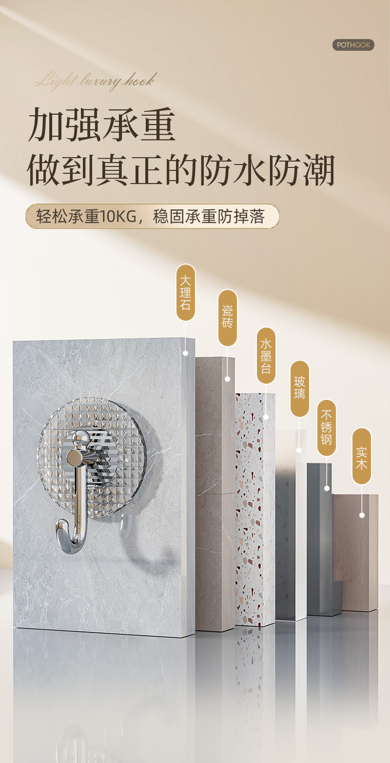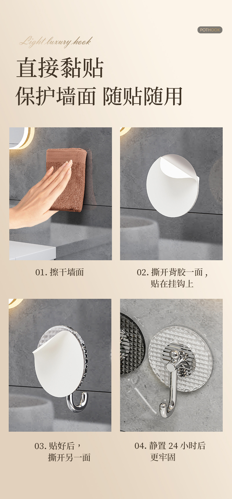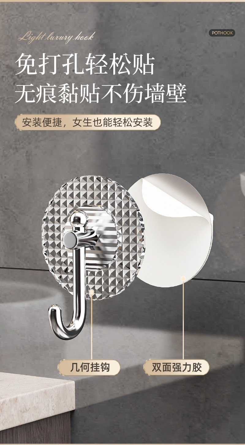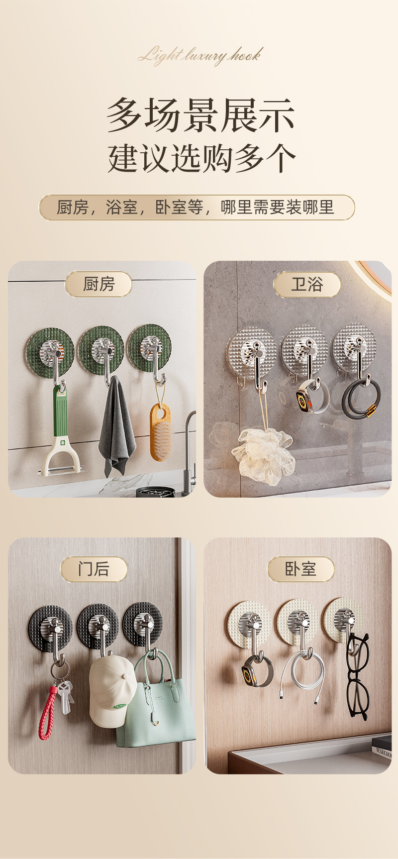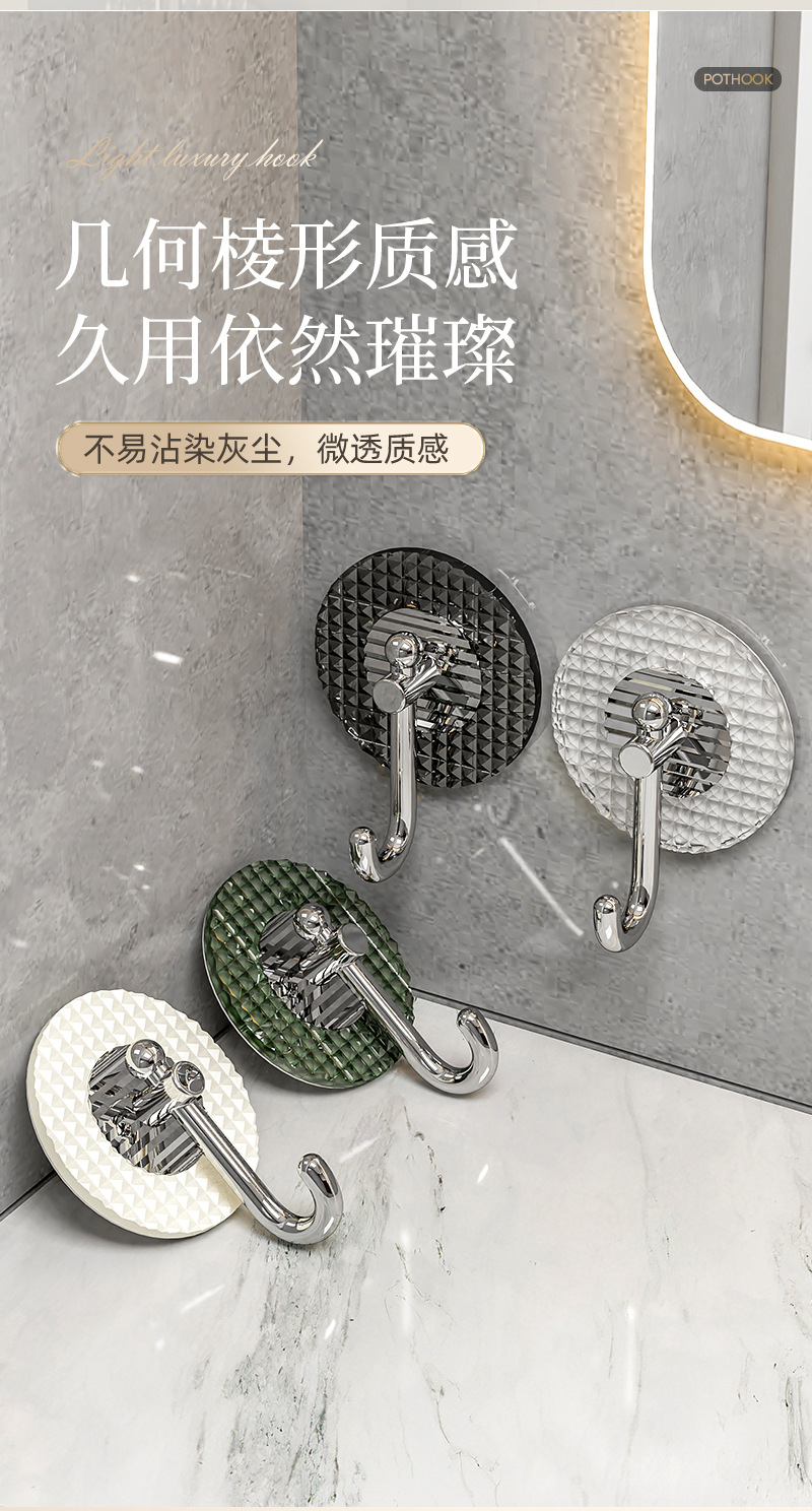Gancho de lujo ligero pegajoso fuerte carga sin perforación baño baño pegajoso gancho detrás de la puerta de la pared sin marcas gancho de toalla