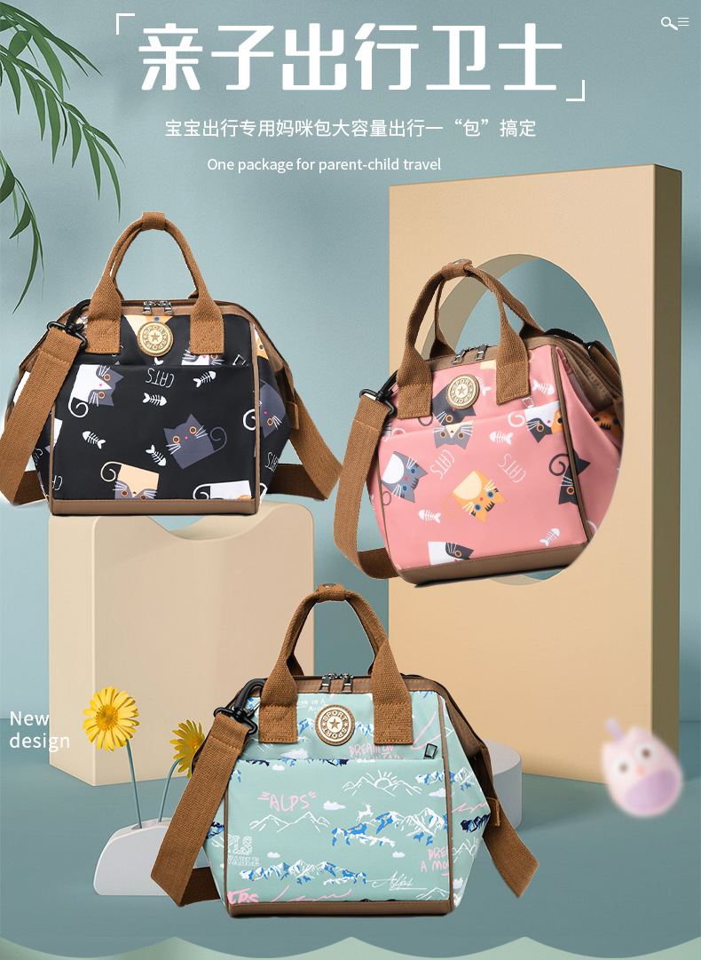 Nuevos bolsos de mamá pequeños, estampados lindos, bolsos de madre e hijo multifuncionales salen, cruzan oblicuamente, doble espalda, bolsos de madre de gran capacidad