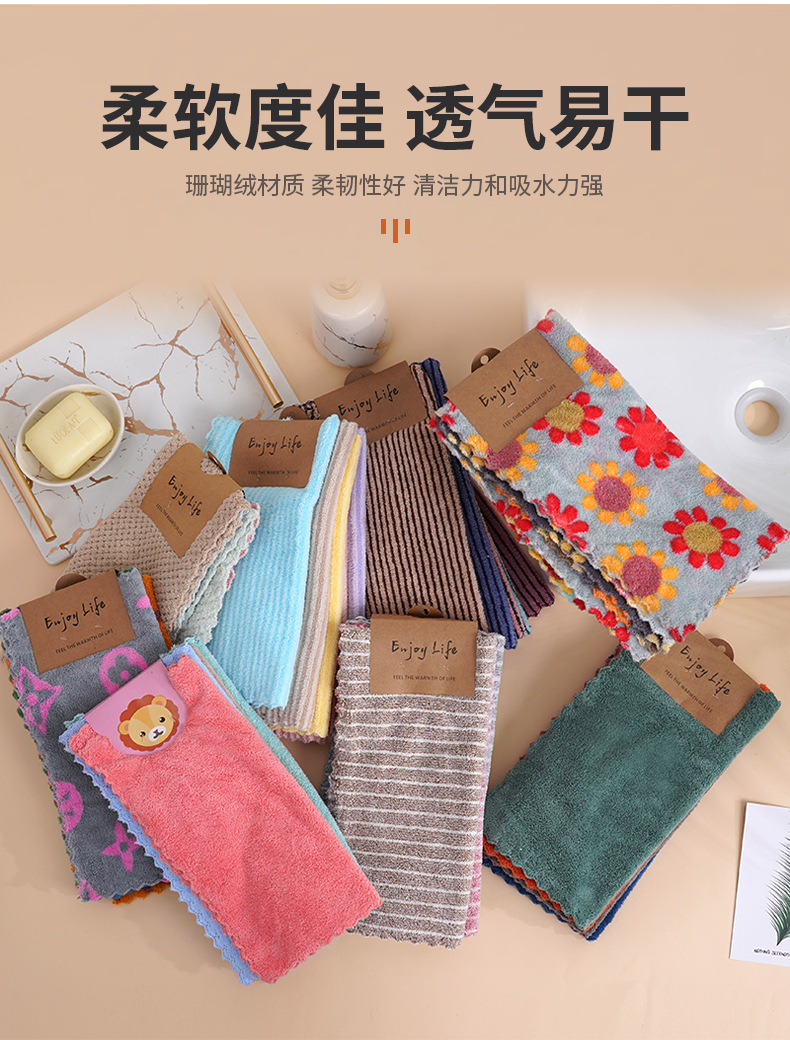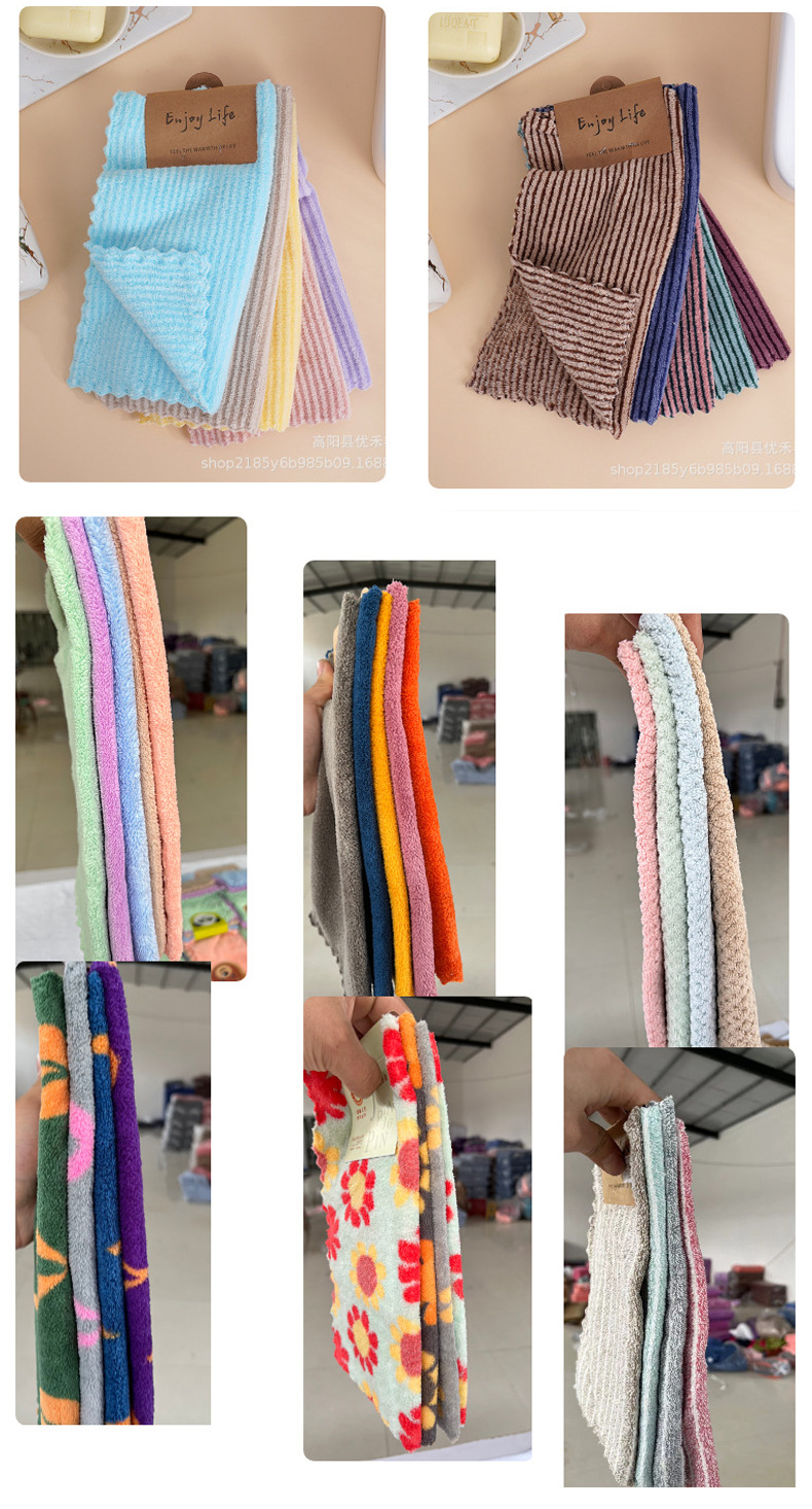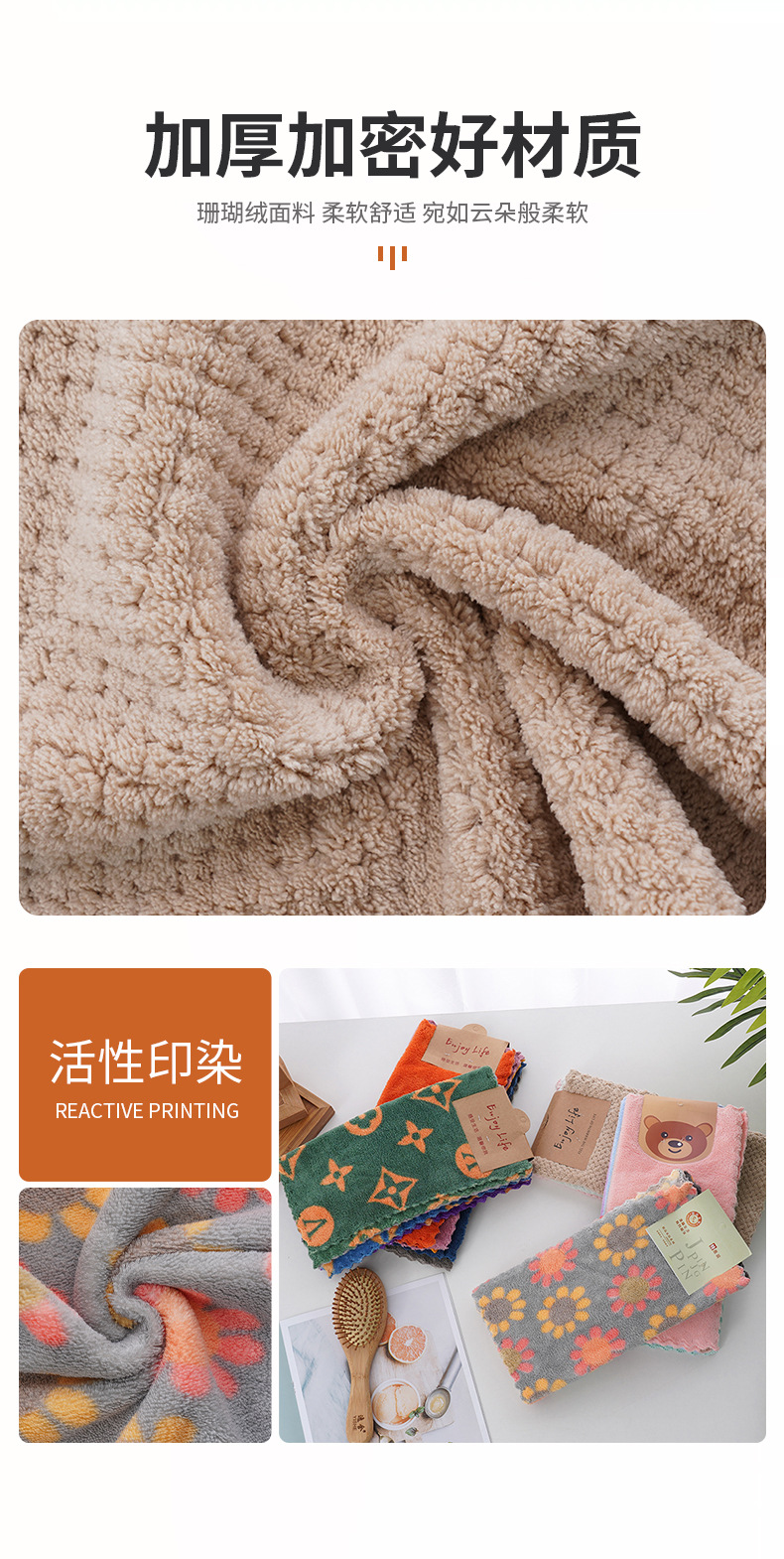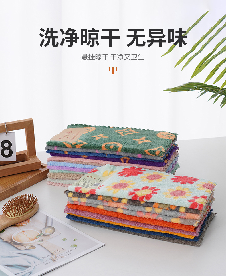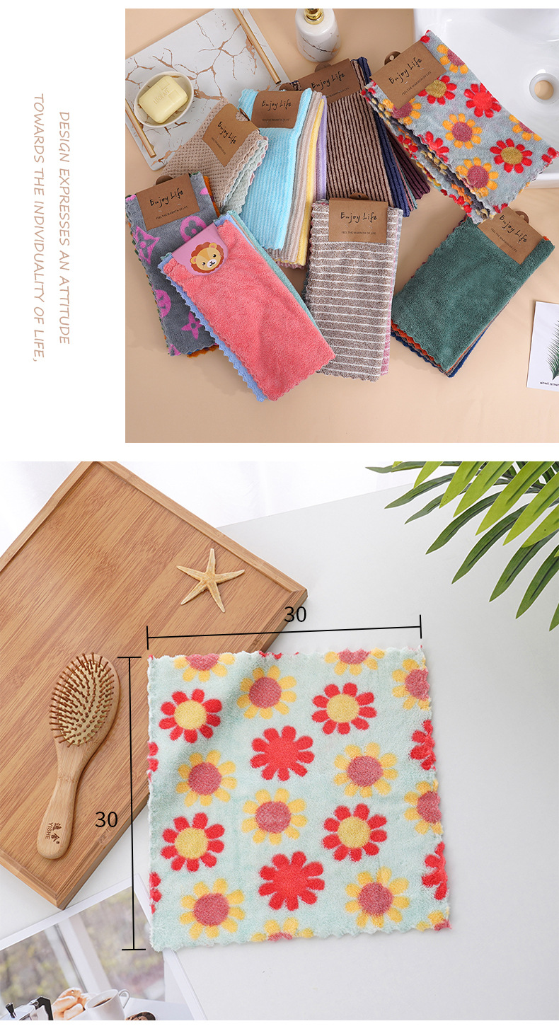 Toallas cuadradas pequeñas impresas en terciopelo de coral de trapo, toallas de limpieza de cocina engrosadas para el hogar, absorben el agua y no pierden el pelo.