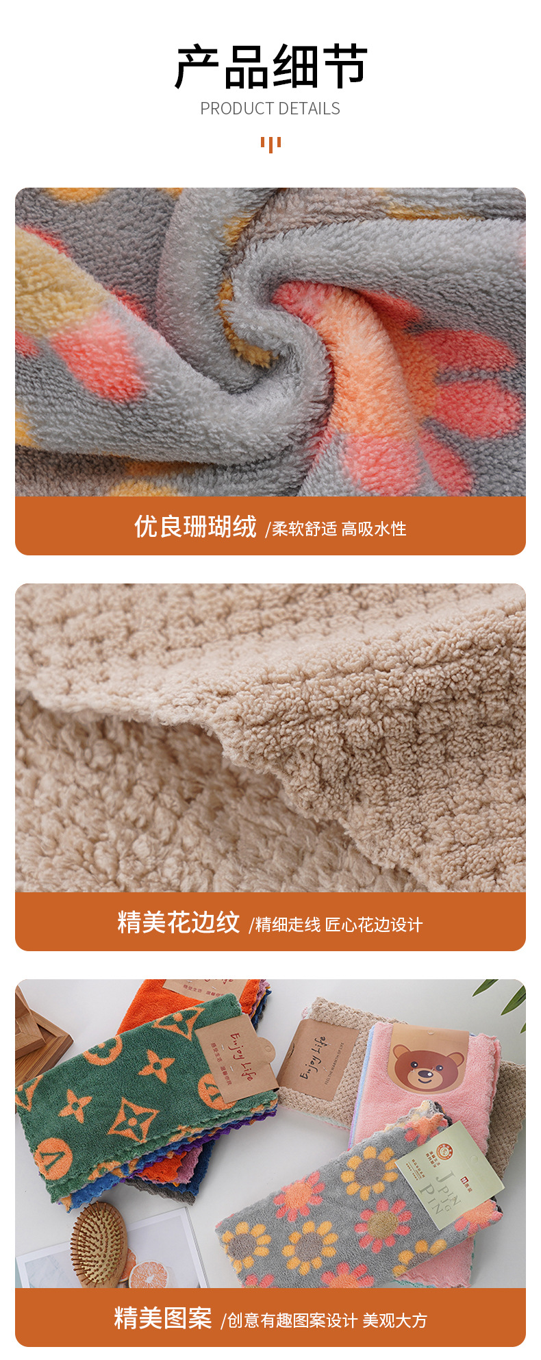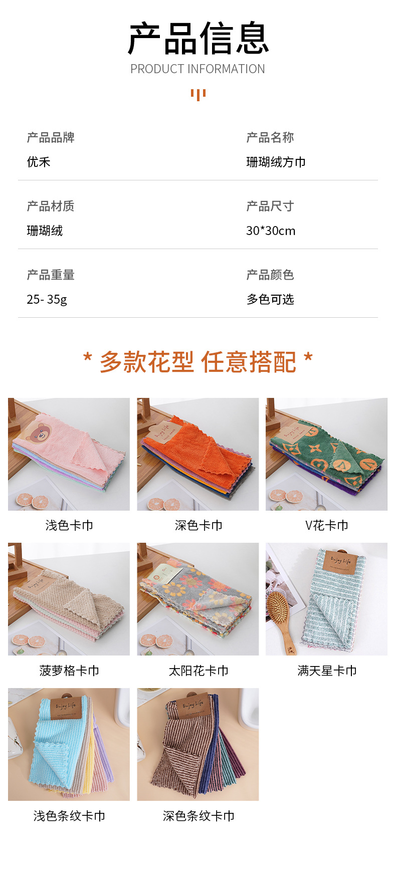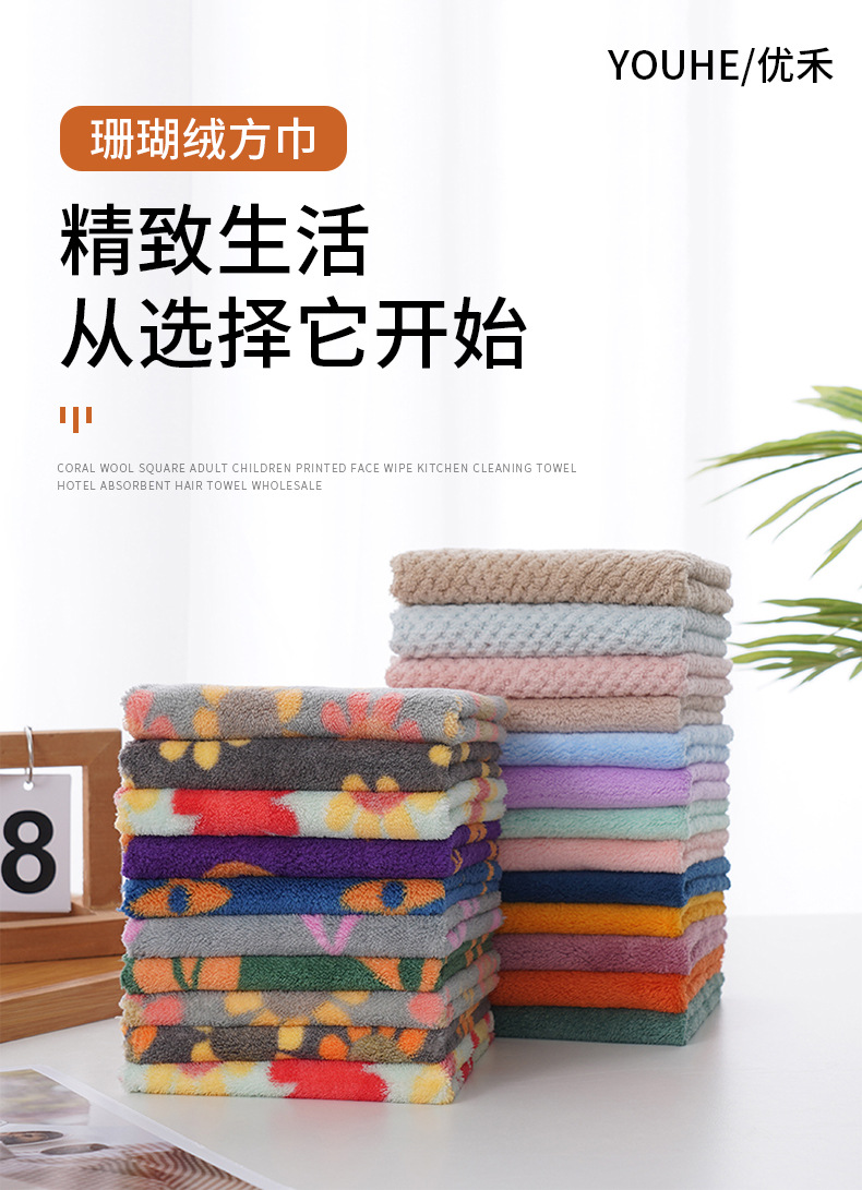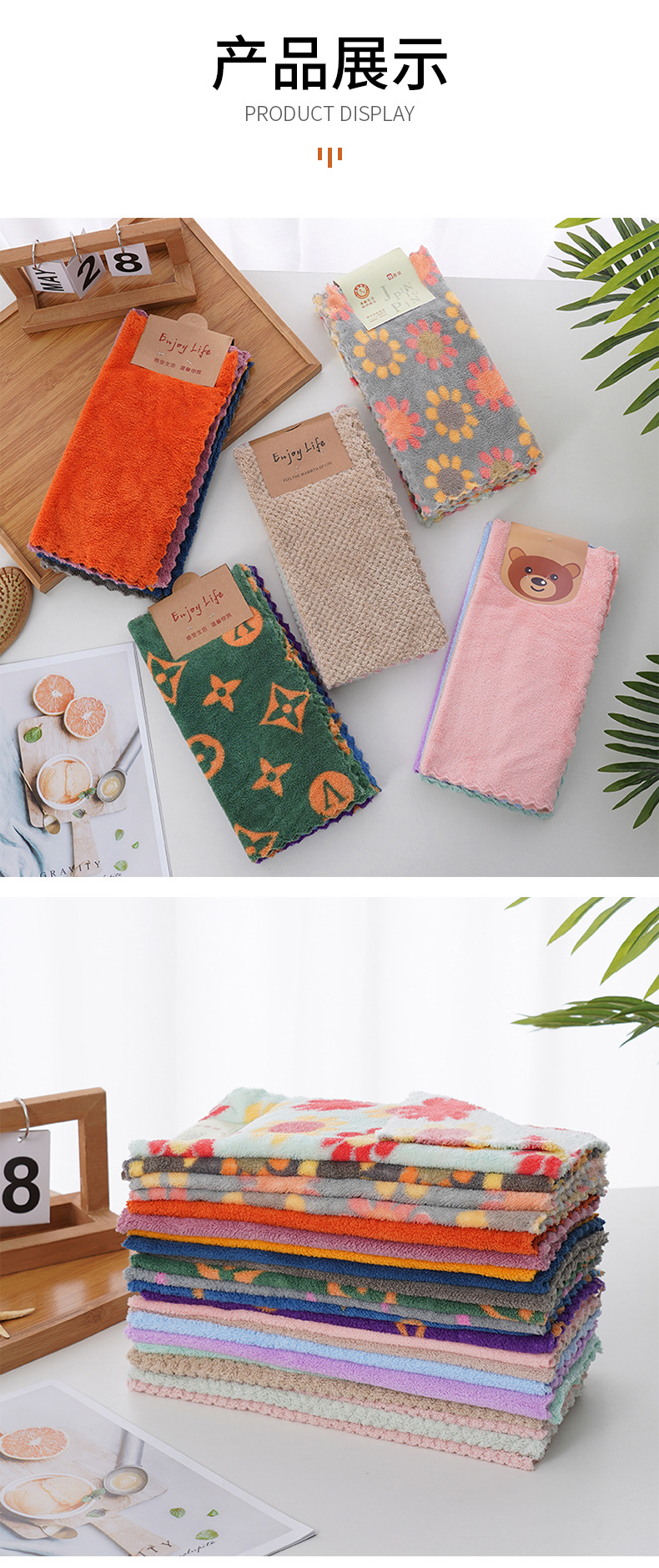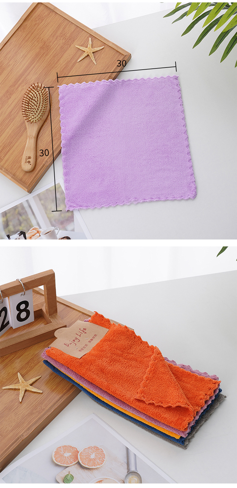 Toallas cuadradas pequeñas impresas en terciopelo de coral de trapo, toallas de limpieza de cocina engrosadas para el hogar, absorben el agua y no pierden el pelo.