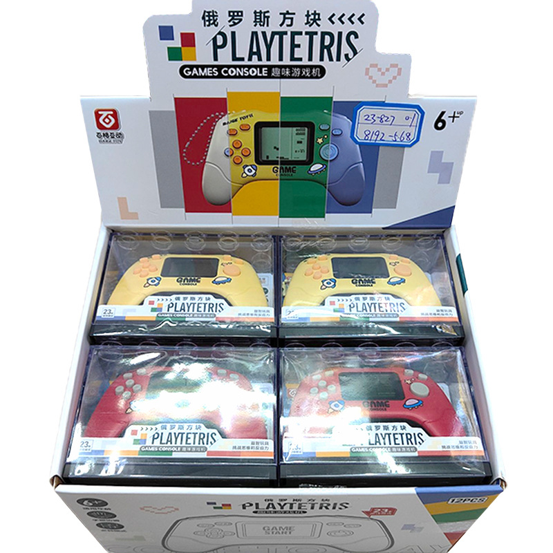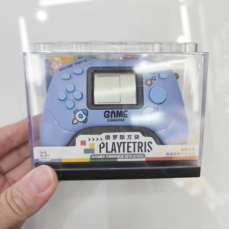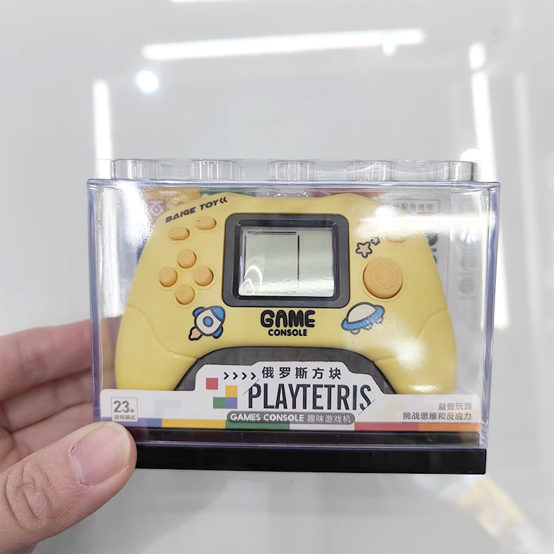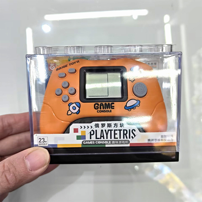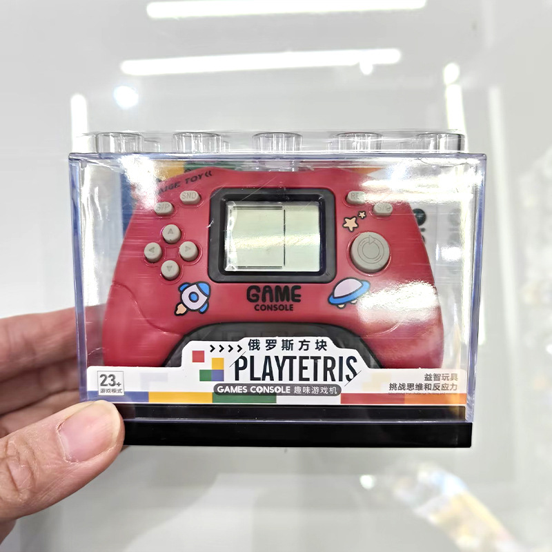Nueva consola de juegos de palma divertida de tetris transfronteriza caja de almacenamiento transparente llavero consola de juegos caliente de la escuela