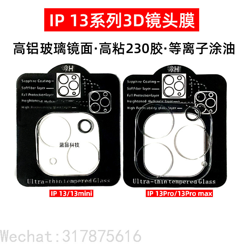 Aplicación de película de lente iPhone 13 Apple 13pro Max mini película protectora de Cámara de vidrio 3D todo incluido