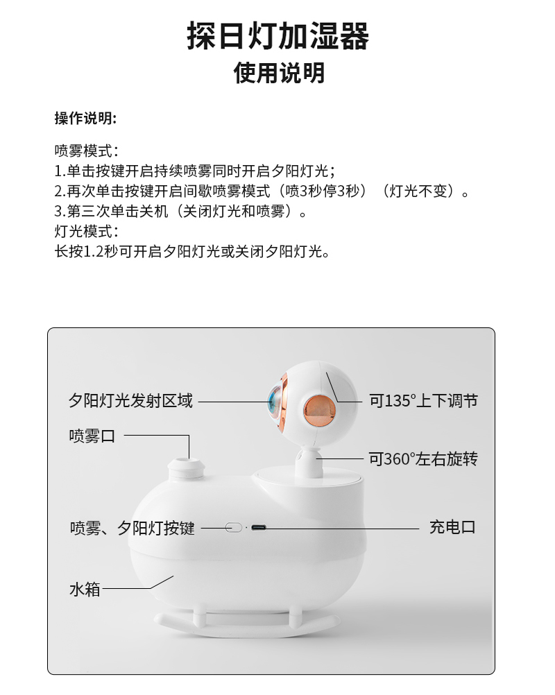 Instalación creativa de la atmósfera del Humidificador de la lámpara de exploración solar