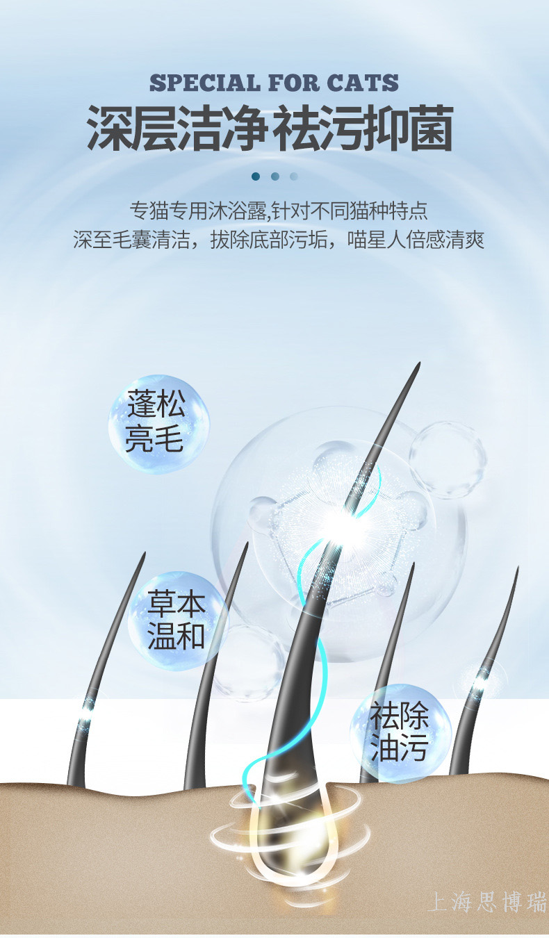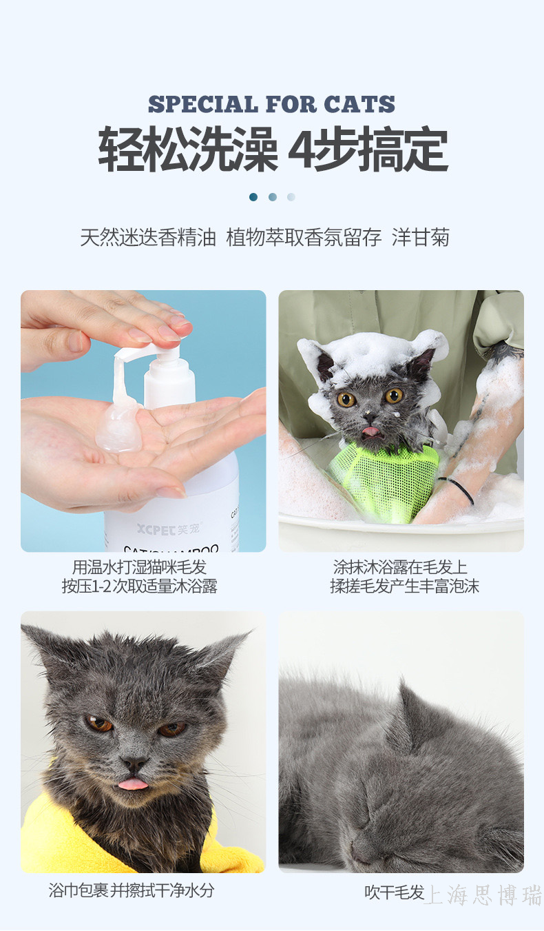 Gel de baño para mascotas al por mayor champú para gatos, barbilla negra, desodorización y picazón, productos de limpieza perfumados a largo plazo