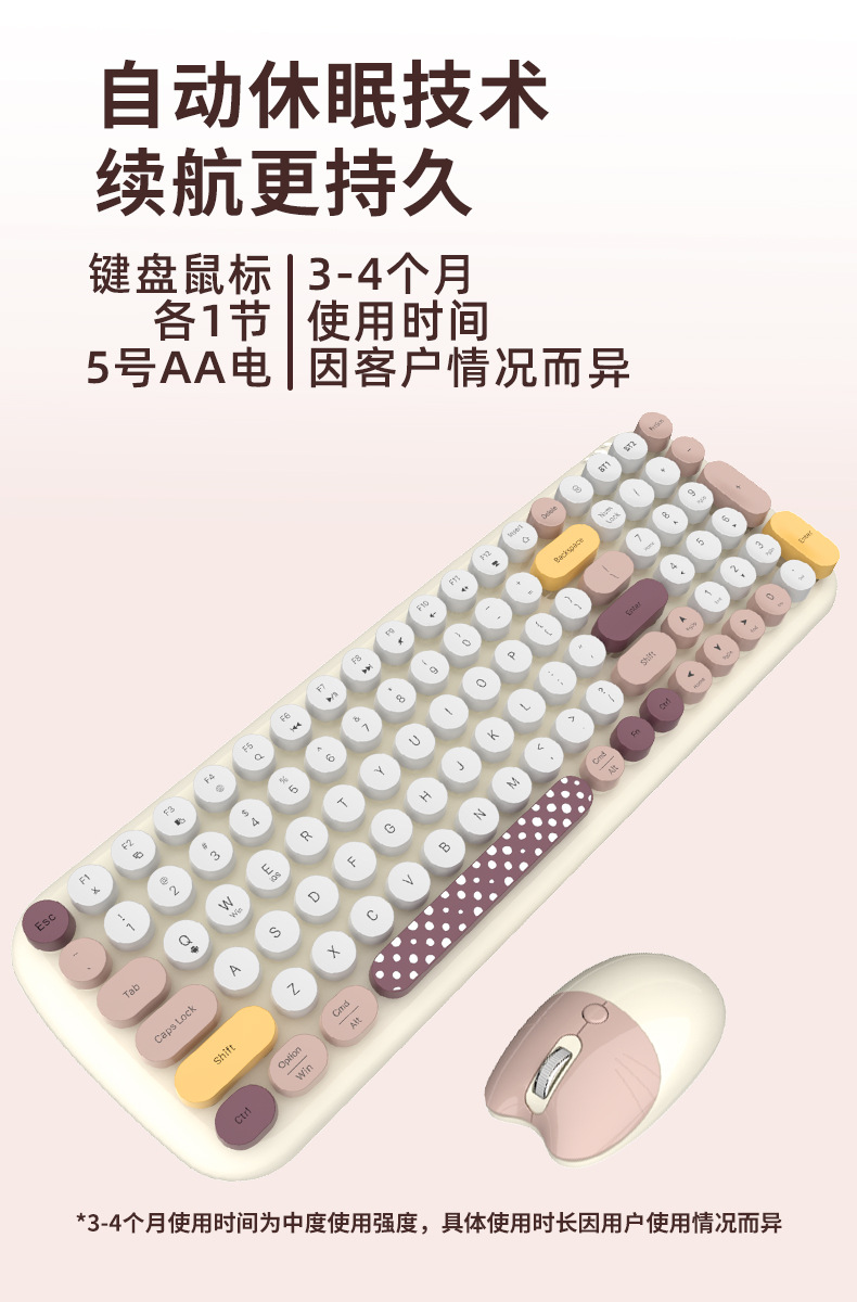 键盘使用2颗7号电池,鼠标使用一颗5号电池(电池有配送)