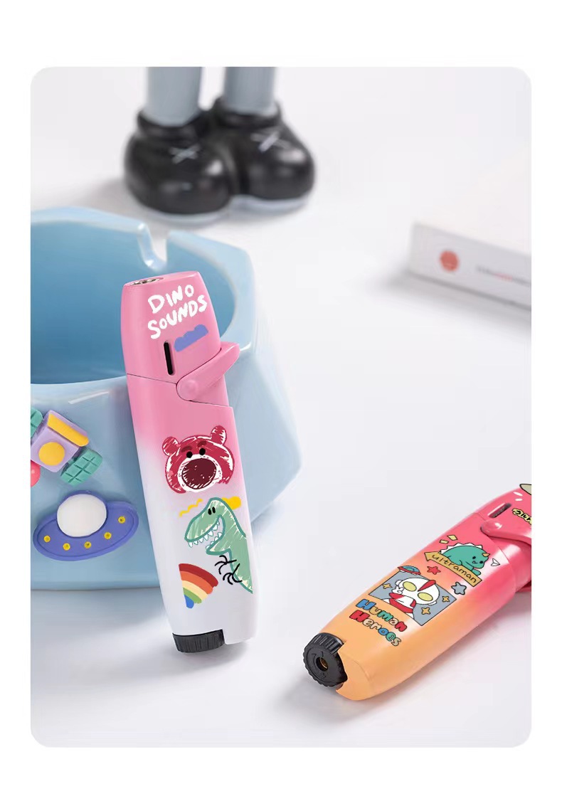 Fabricante mayorista de encendedores grabados con logotipo impreso de la marca del puerto encendedores desechables a prueba de fuego abierto y viento de alto valor facial