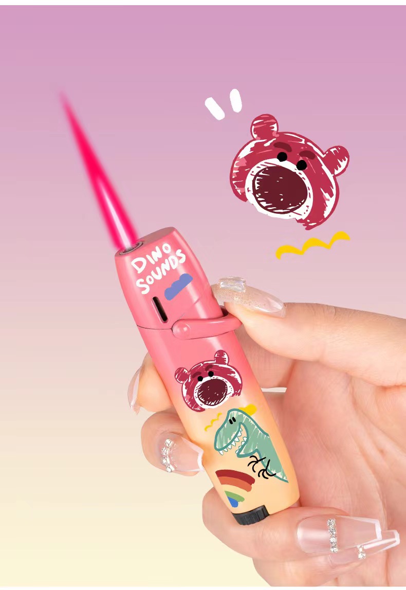 Sanrio Animation fresa tipo lindo encendedor de llama Púrpura a prueba de viento encendedor inflable INS encendedor de viento