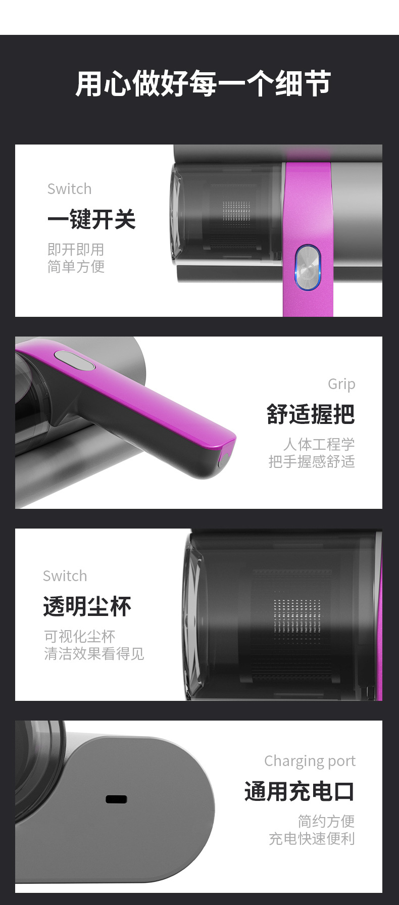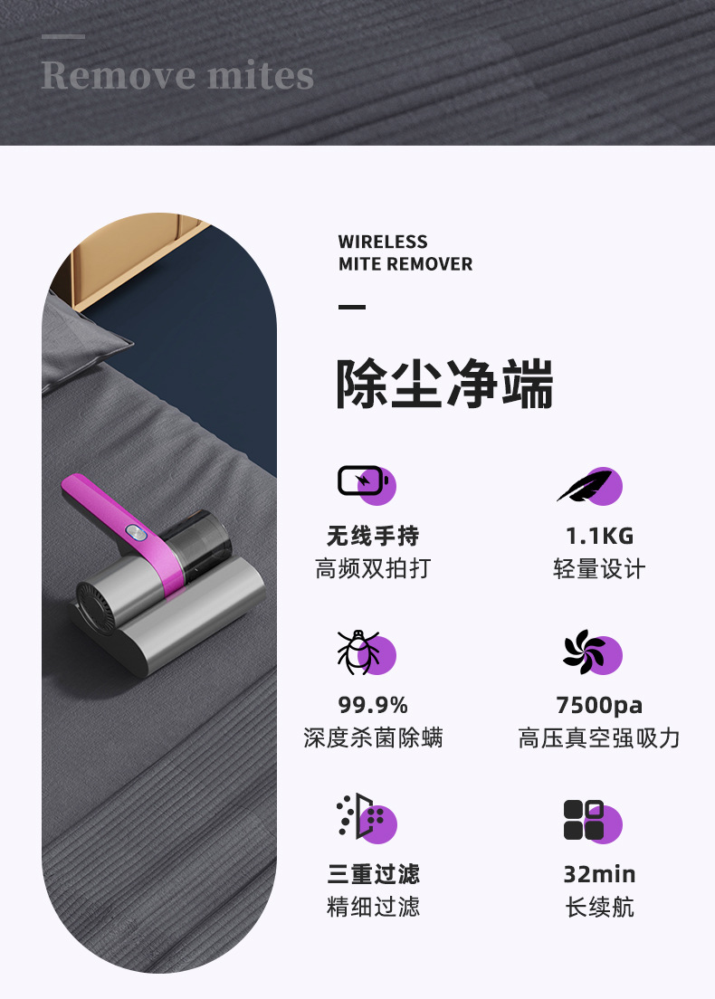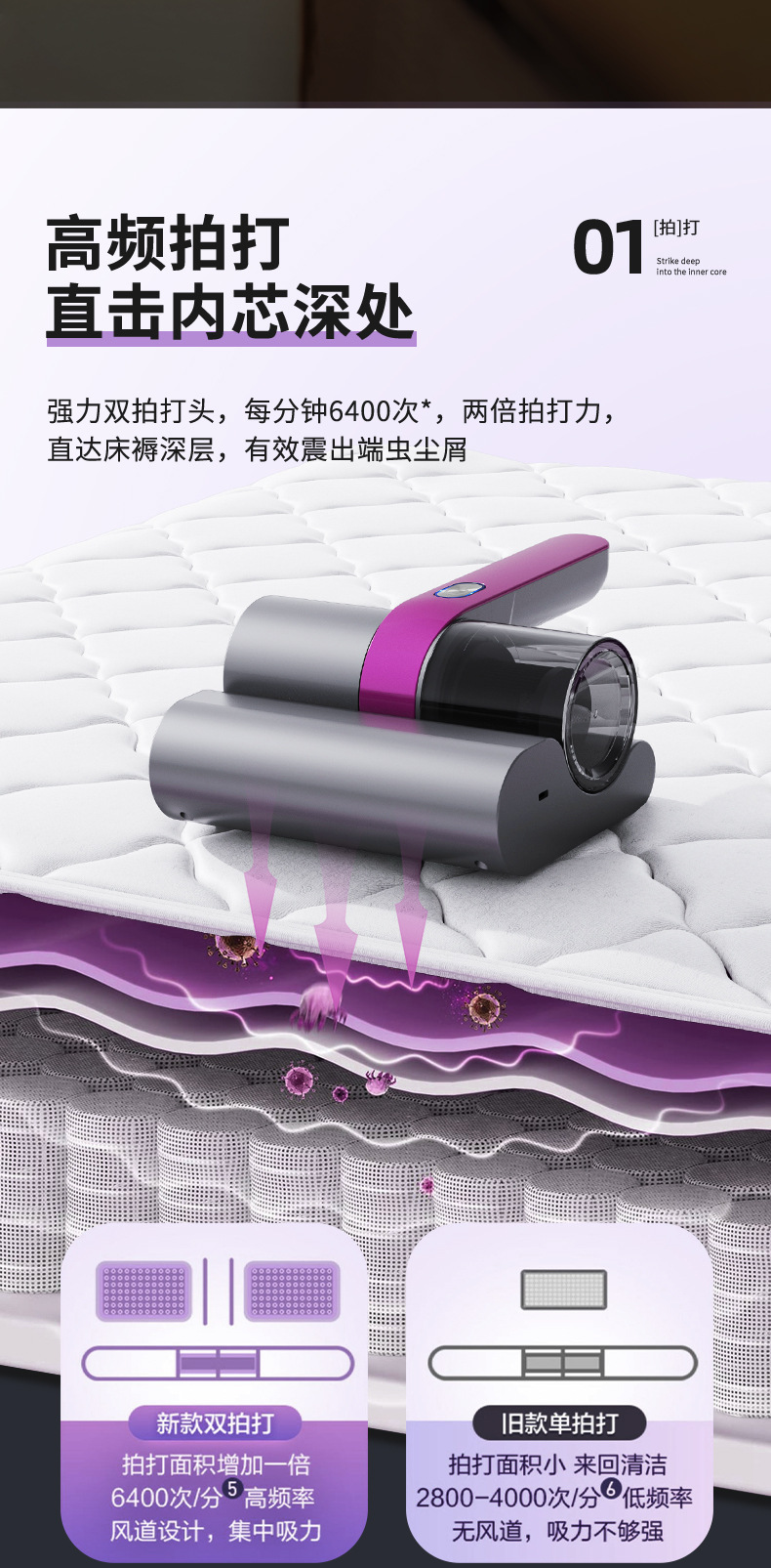 El fabricante vende directamente aspiradora esterilizadora de gran succión en la cama del eliminador de ácaros doméstico, aspiradora eliminadora de ácaros