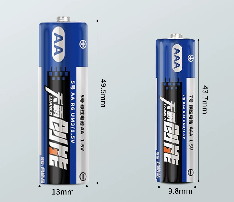 Batería 5 No. 7 control remoto puesto de juguetes batería de carbono 5 No. 7 AA fabricante de baterías secas venta directa al por mayor