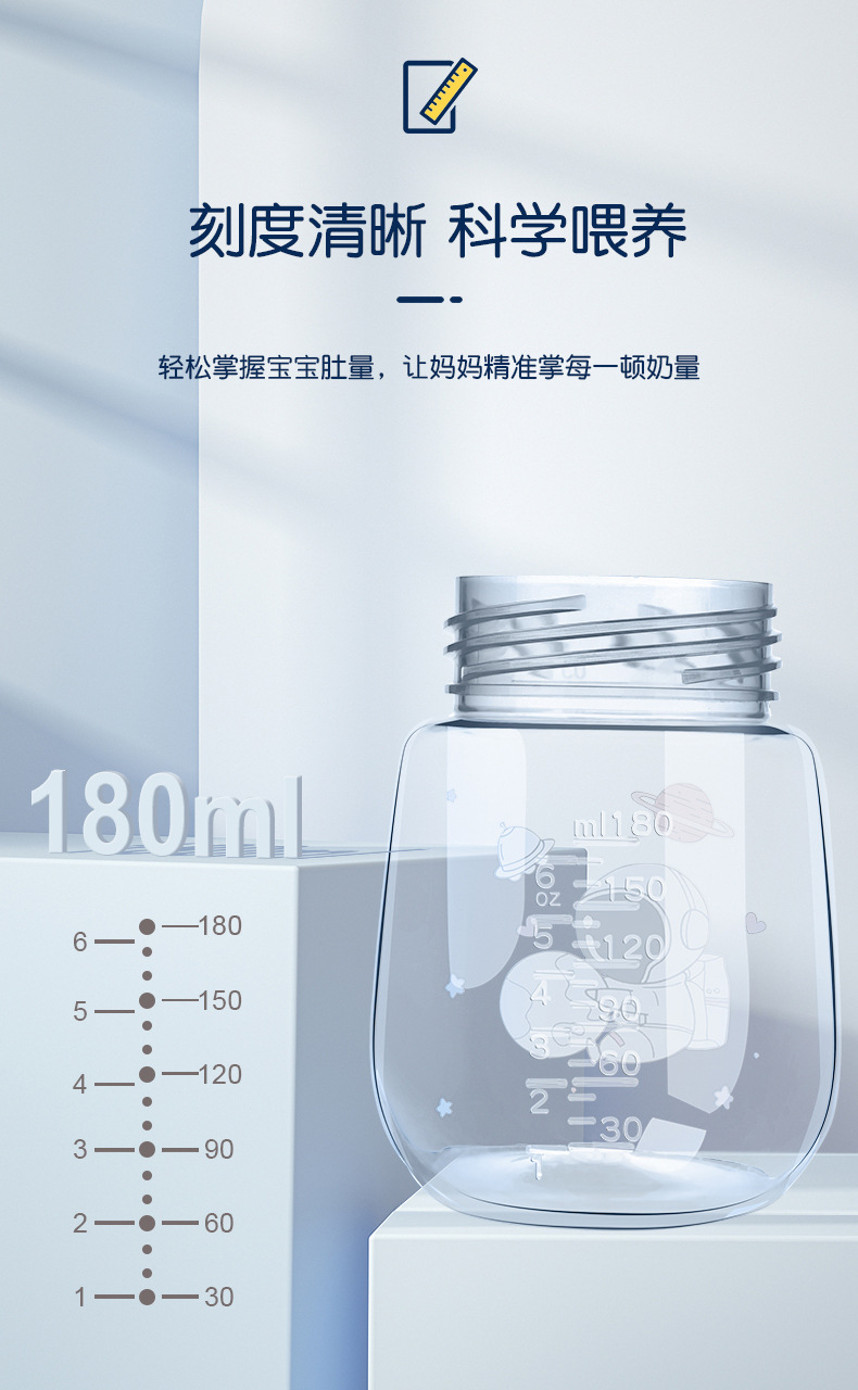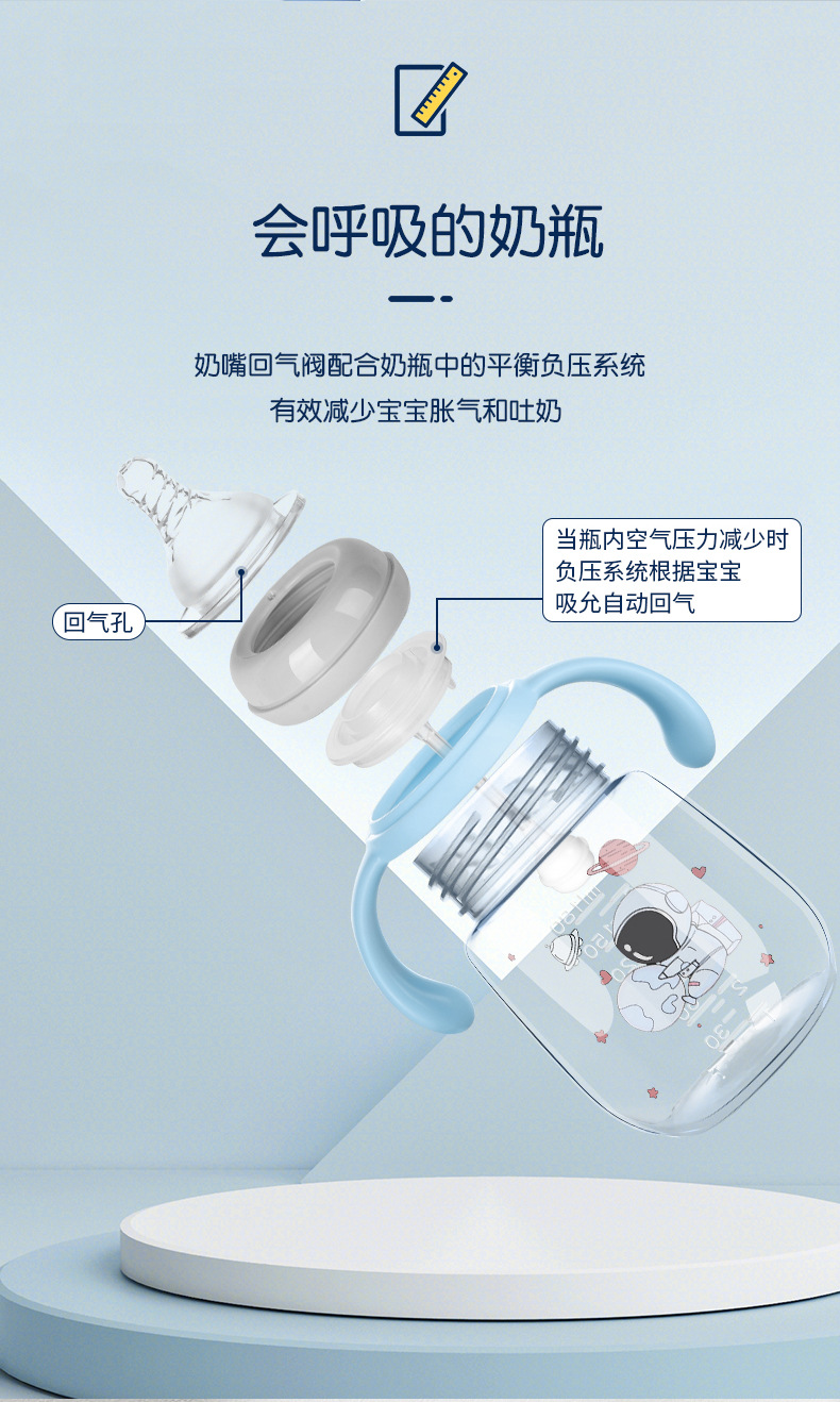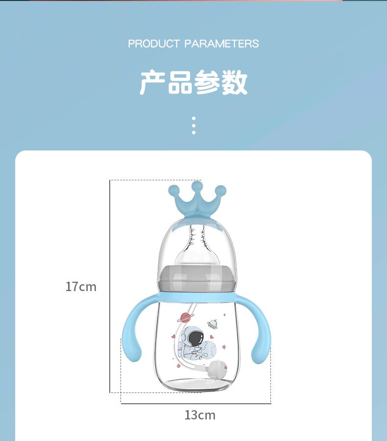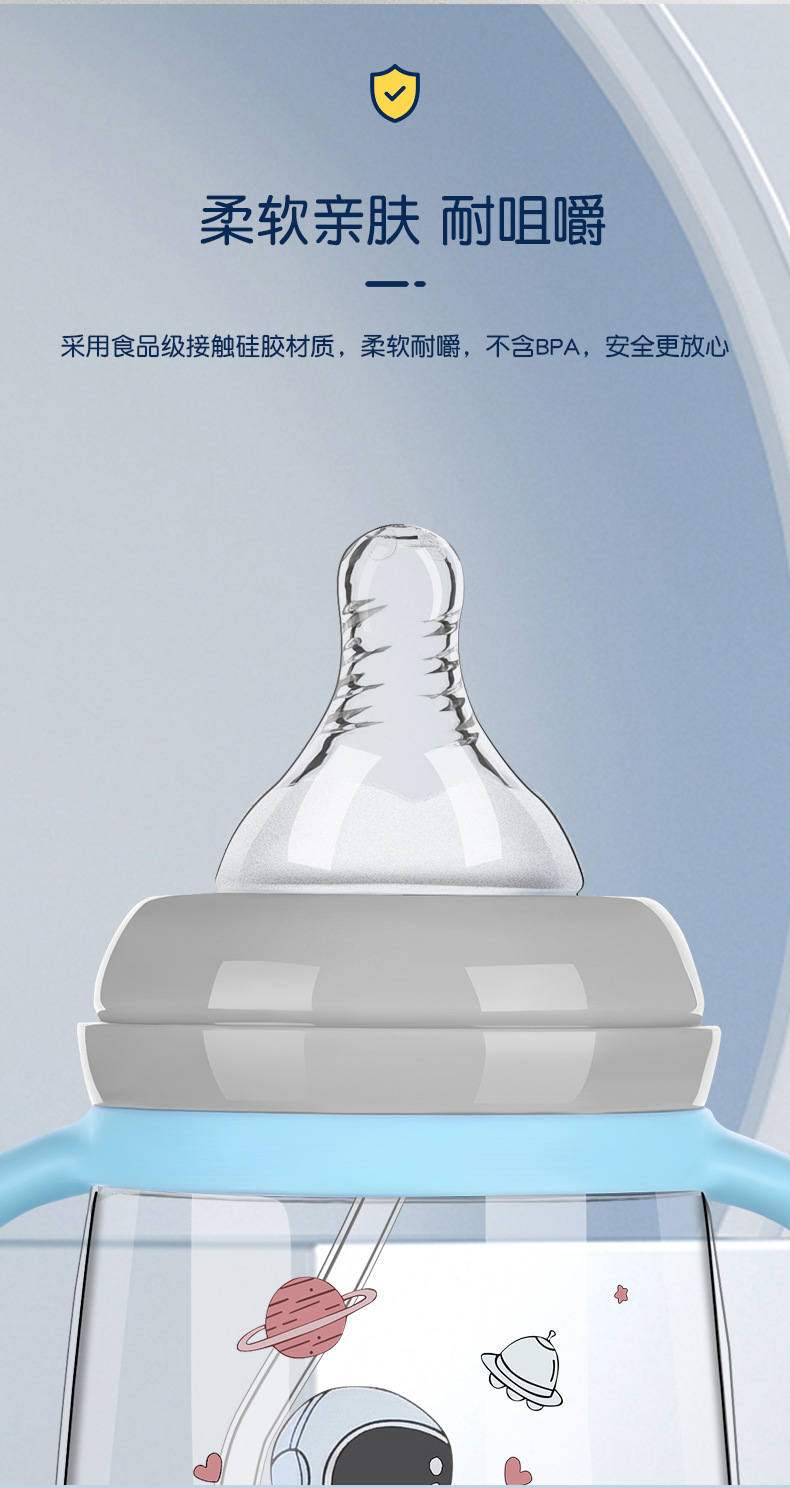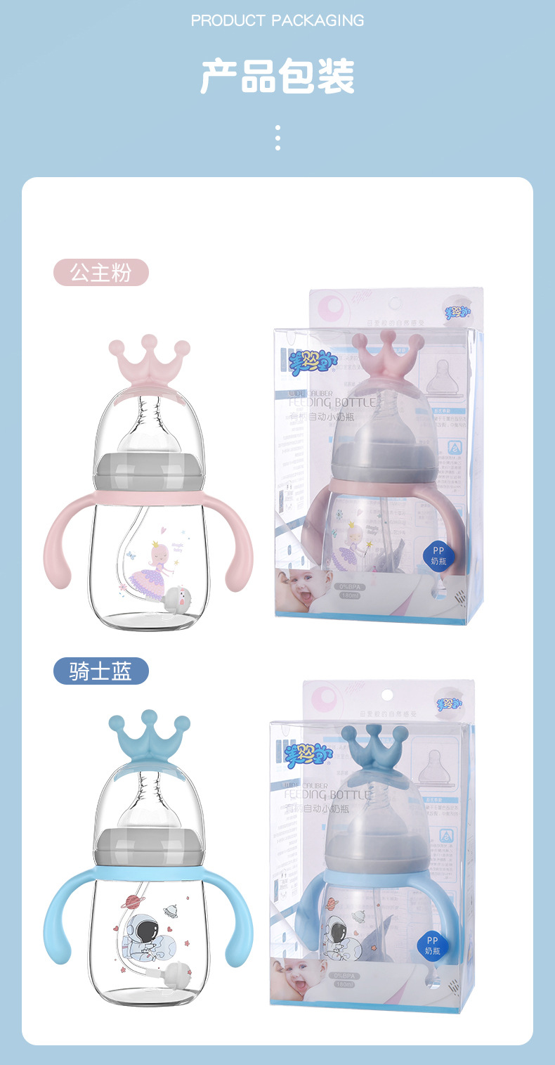 Fabricante mayorista de bebés con mango biberón de plástico de aislamiento térmico 180ml biberón de boca ancha antiflatulencia y resistencia a la caída taza de pajita