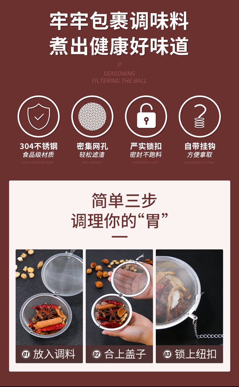 304 red de acero inoxidable bola de té para hacer té condimento bola de sabor tesoro fuga de té olla caliente especia salmuera filtro