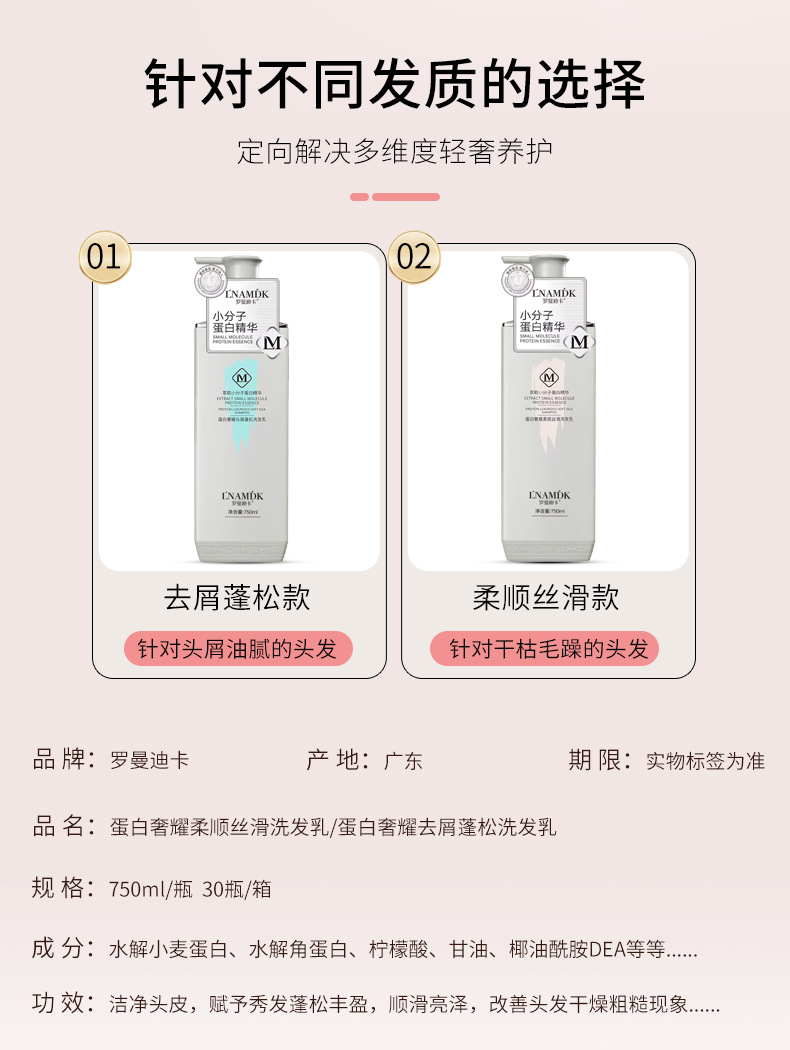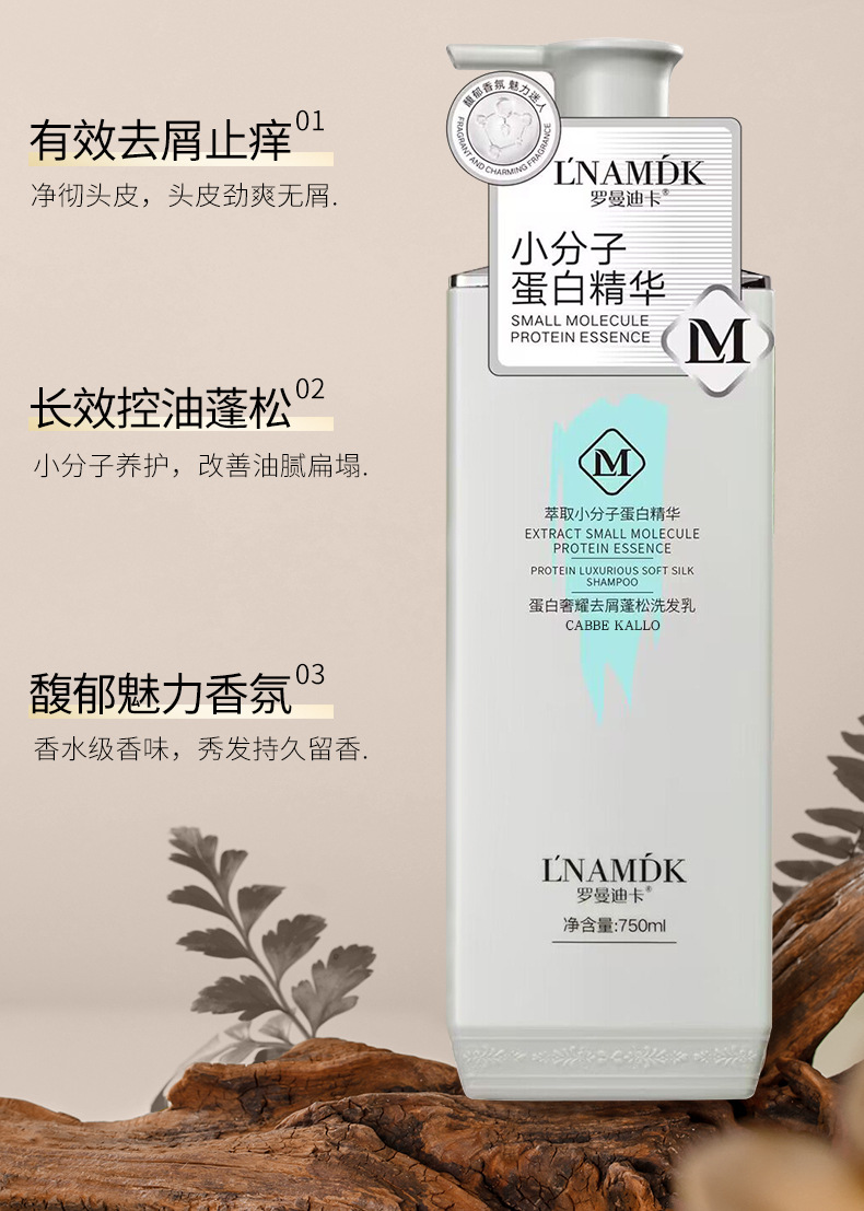Fabricante mayorista de champús suaves con esencia de proteína de moléculas pequeñas, fragancia duradera, control de aceite, eliminación de caspa, champú para el cabello