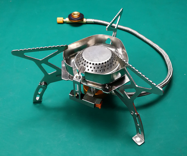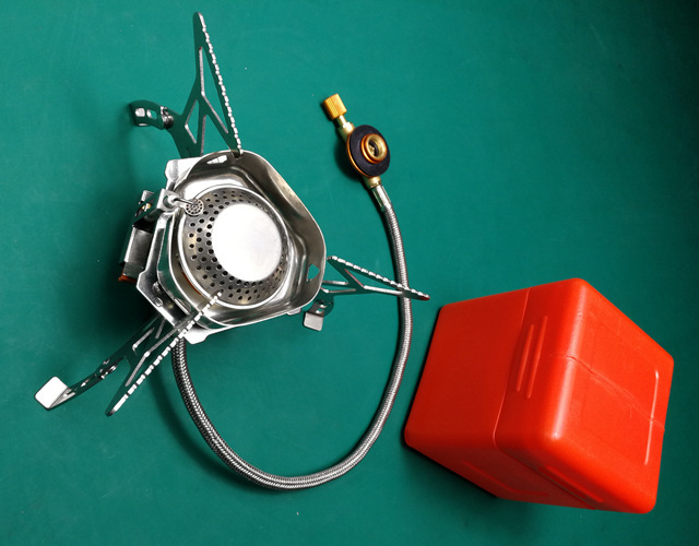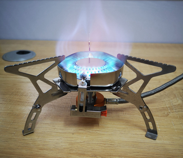 Estufa de campamento portátil con cabeza de horno dividida en seguridad, estufa de gas al aire libre con cabeza de horno de campamento de montañismo