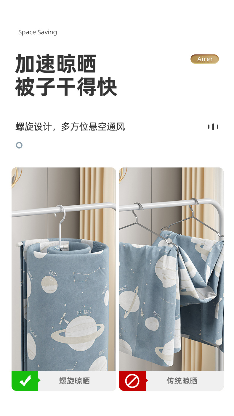 Artefacto de secado de edredones, balcón de tendedero en espiral, gran rotación circular para colgar edredones fríos, artefacto de secado de edredones