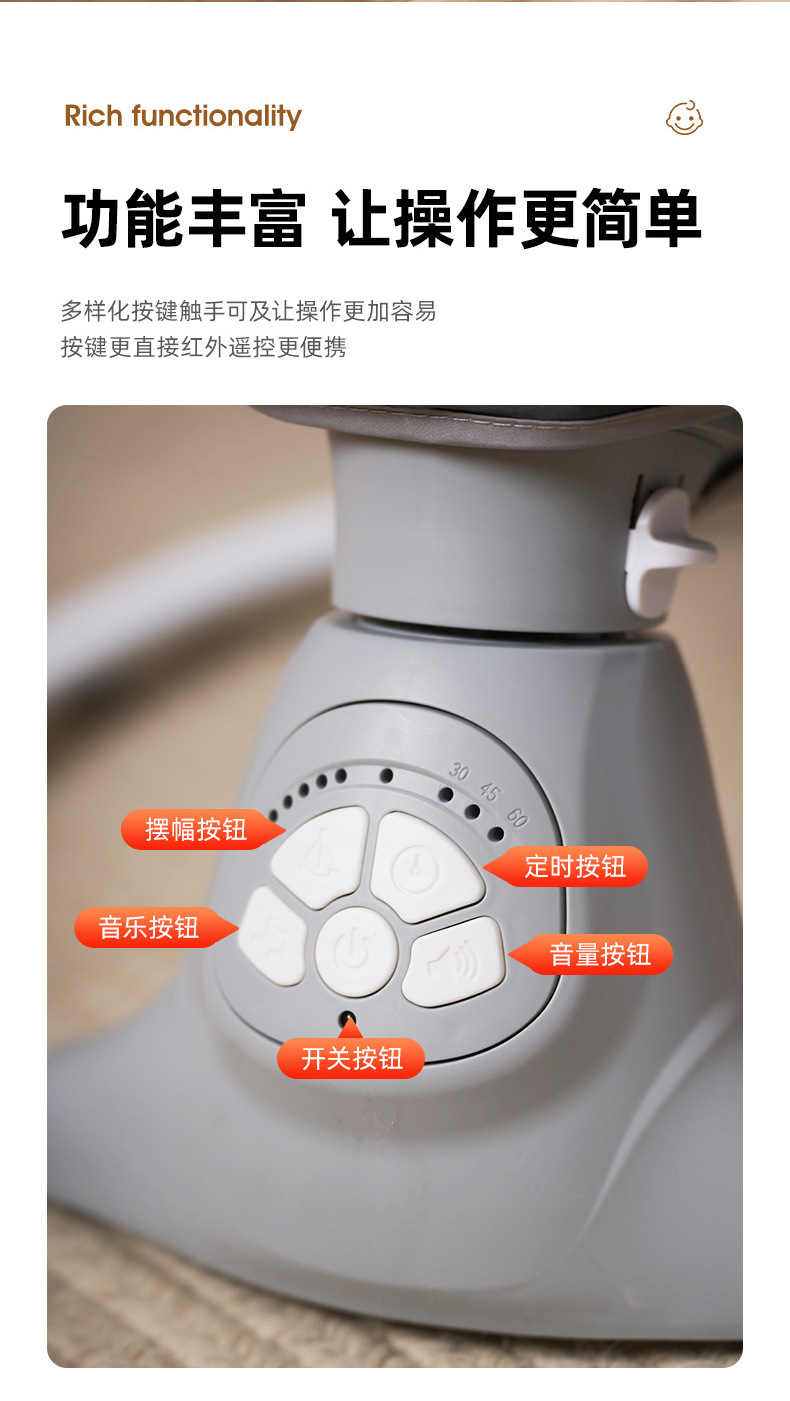 本产品带遥控,带蓝牙,蚊帐,靠背调节,可上亚马逊