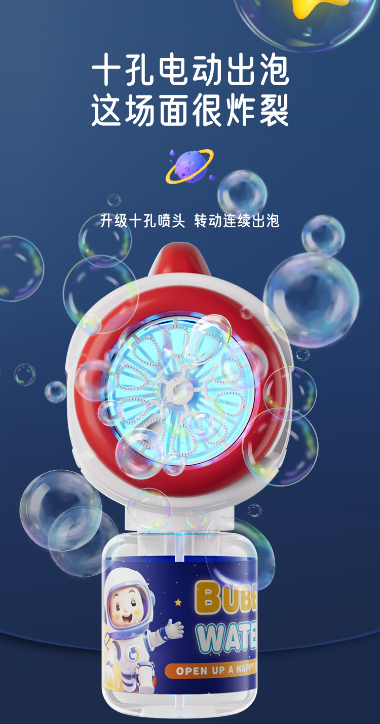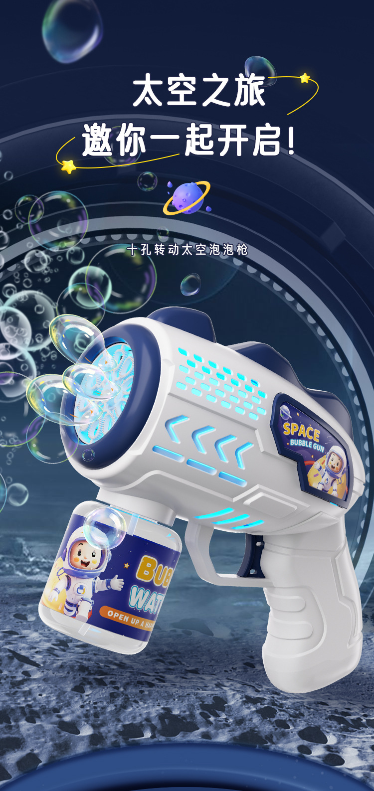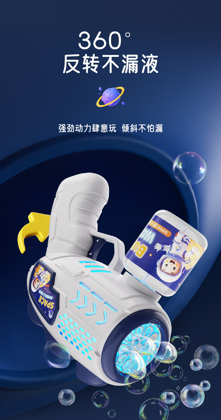 Máquina de burbujas astronauta espacial totalmente automática gatlin pistola eléctrica de soplado de burbujas red explosión de juguetes para niños