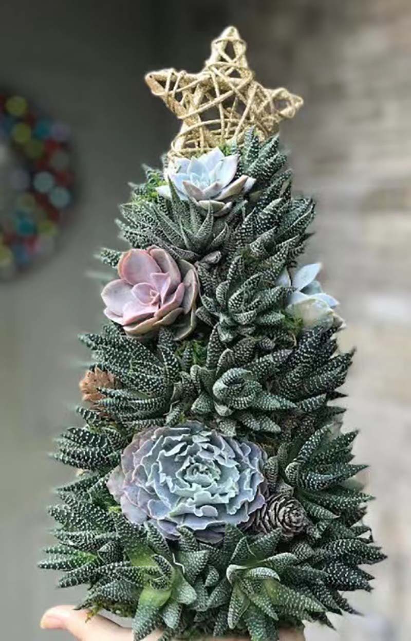 Escaparate de árboles de Navidad transfronterizos con adornos de árboles de Navidad carnosos diseño de artesanías de resina árboles de Navidad plantas verdes