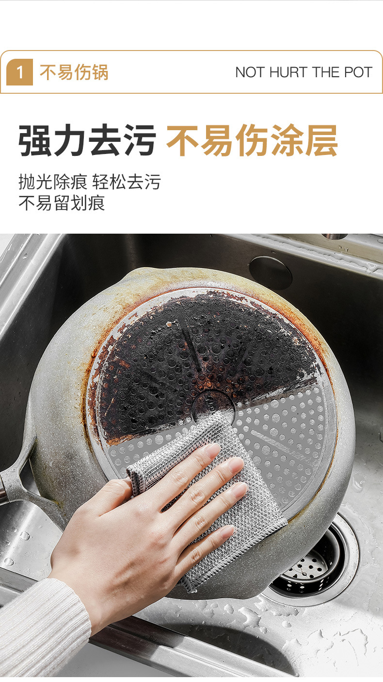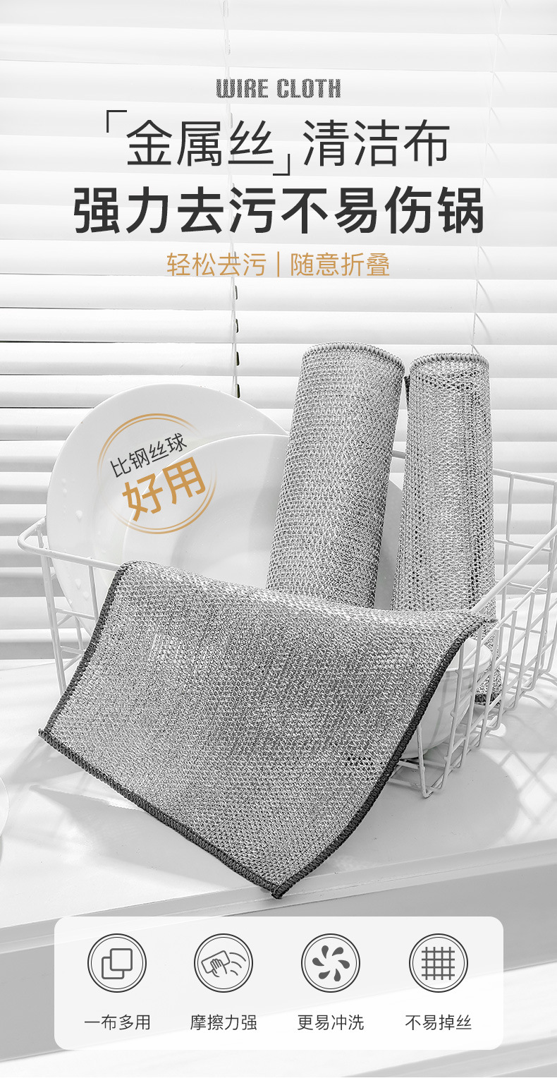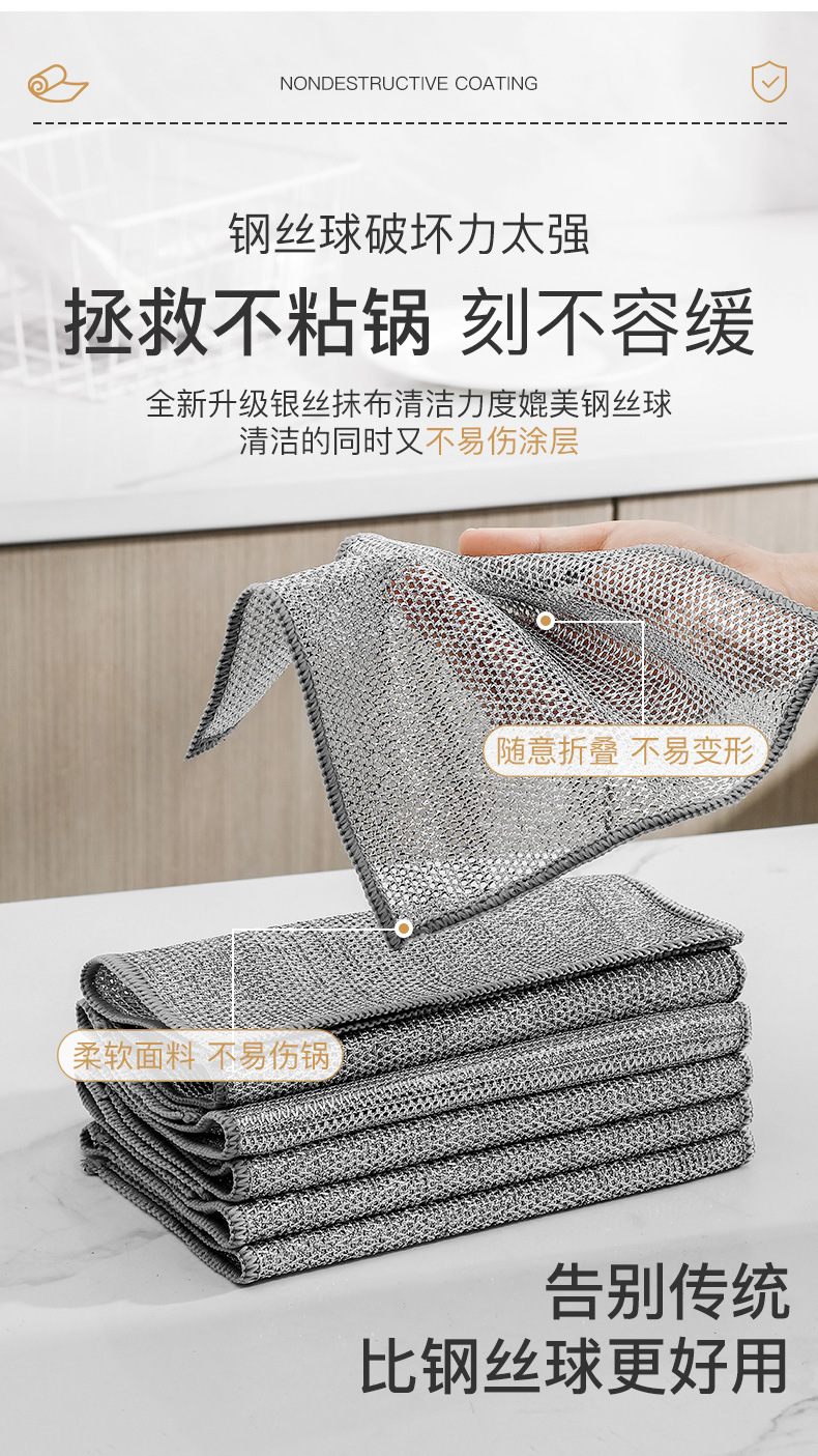 Trapo de seda de plata doble cara tela de lavado de vajilla de seda de plata reemplaza la cocina de bola de acero para eliminar el aceite, toallitas de lavado de vajilla, tela de limpieza de alambre metálico