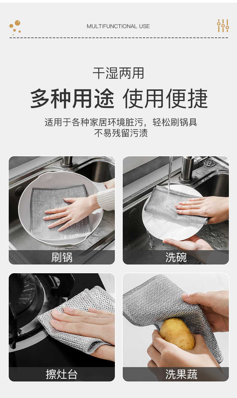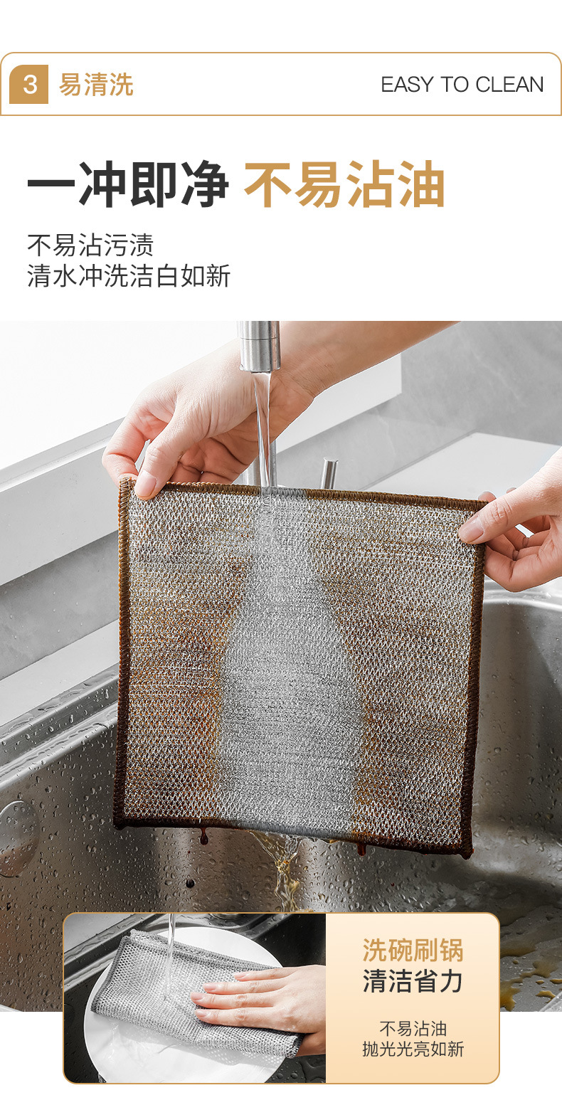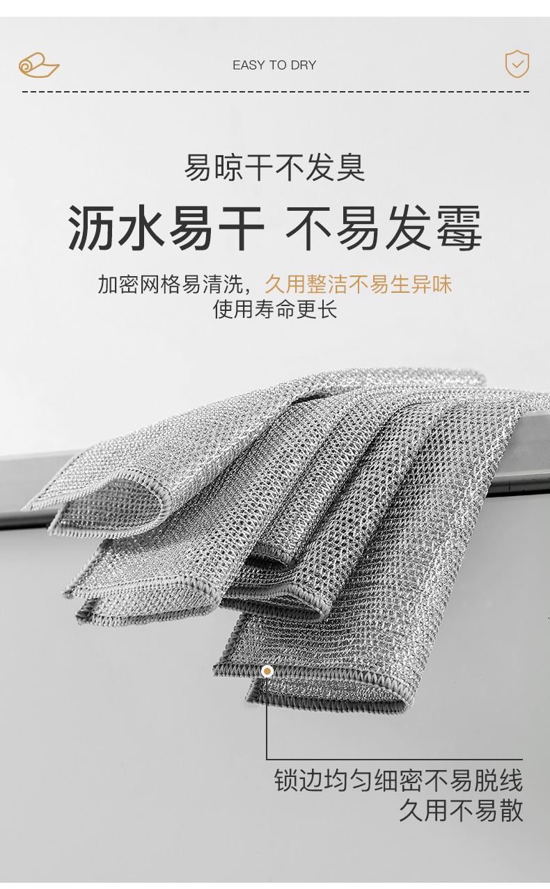 Trapo de seda de plata doble cara tela de lavado de vajilla de seda de plata reemplaza la cocina de bola de acero para eliminar el aceite, toallitas de lavado de vajilla, tela de limpieza de alambre metálico
