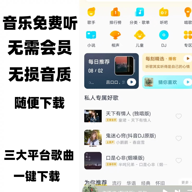 El artefacto de escuchar canciones de forma permanente y gratuita no daña la Música Mp3 para descargar el software de canciones app Android hongmeng Computer Player