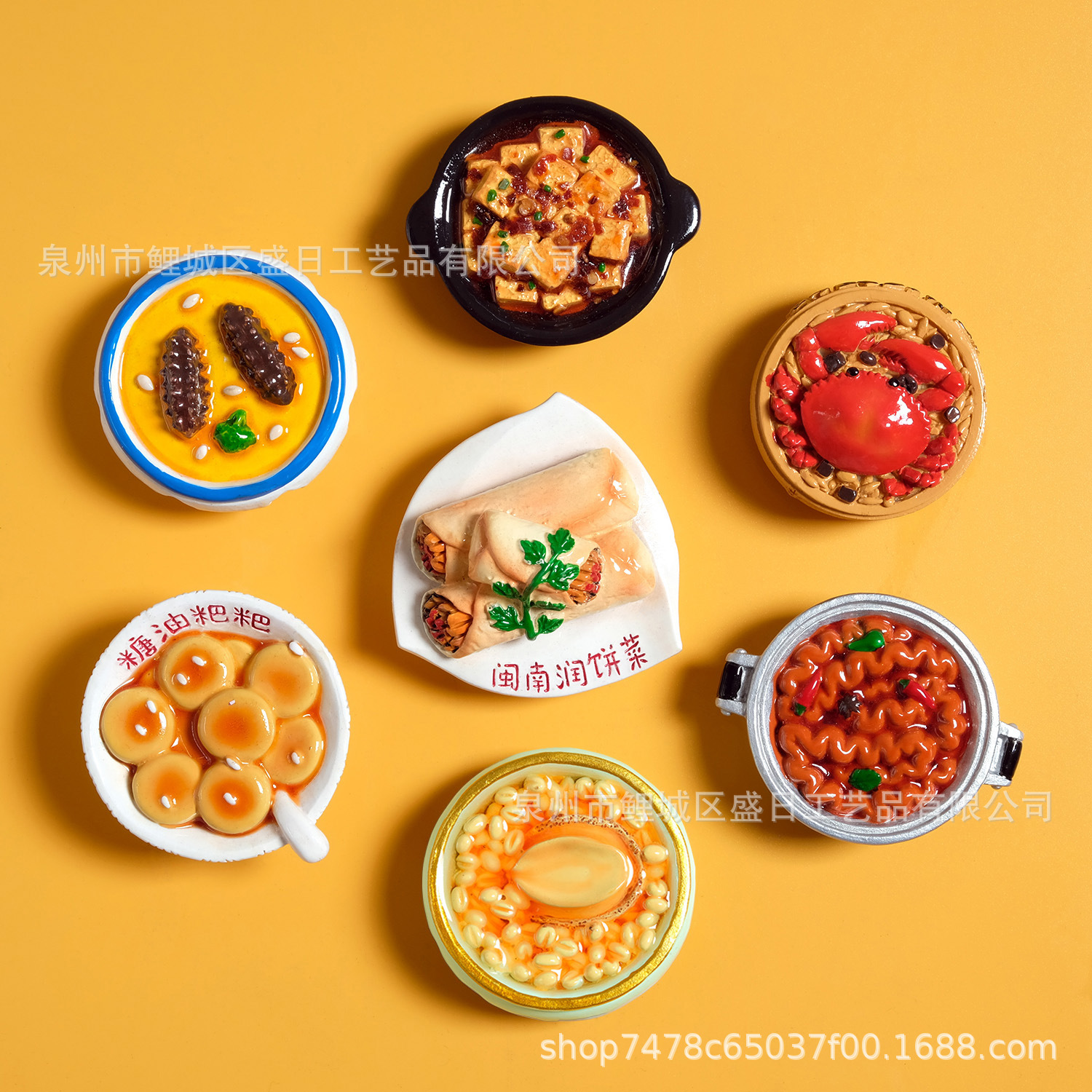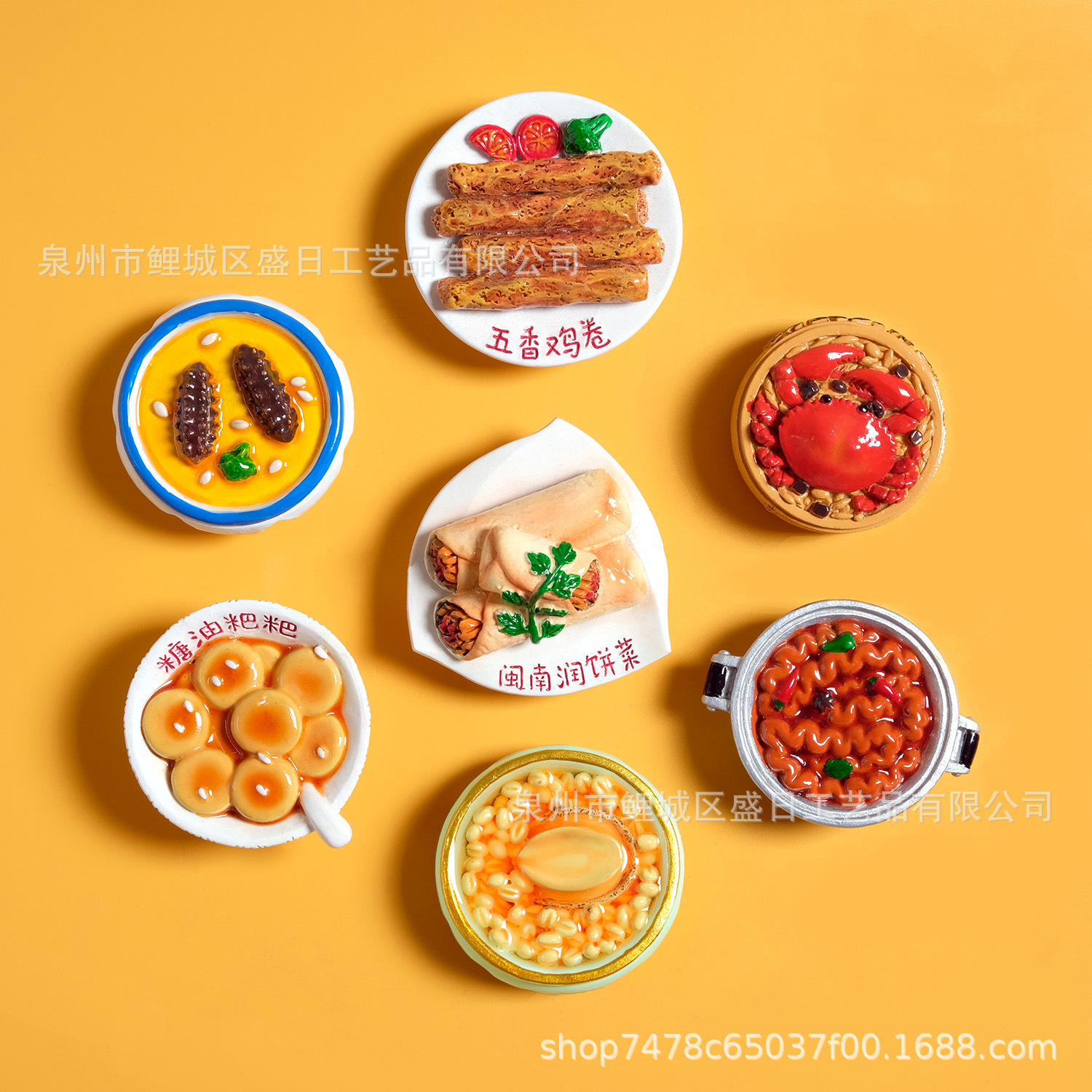 Daga Foods juega con huevos al vapor de pepino de mar de intestino grueso estofado Guan Dong cocina alimentos simulados resina refrigerador pegatinas pegatinas para la decoración del hogar