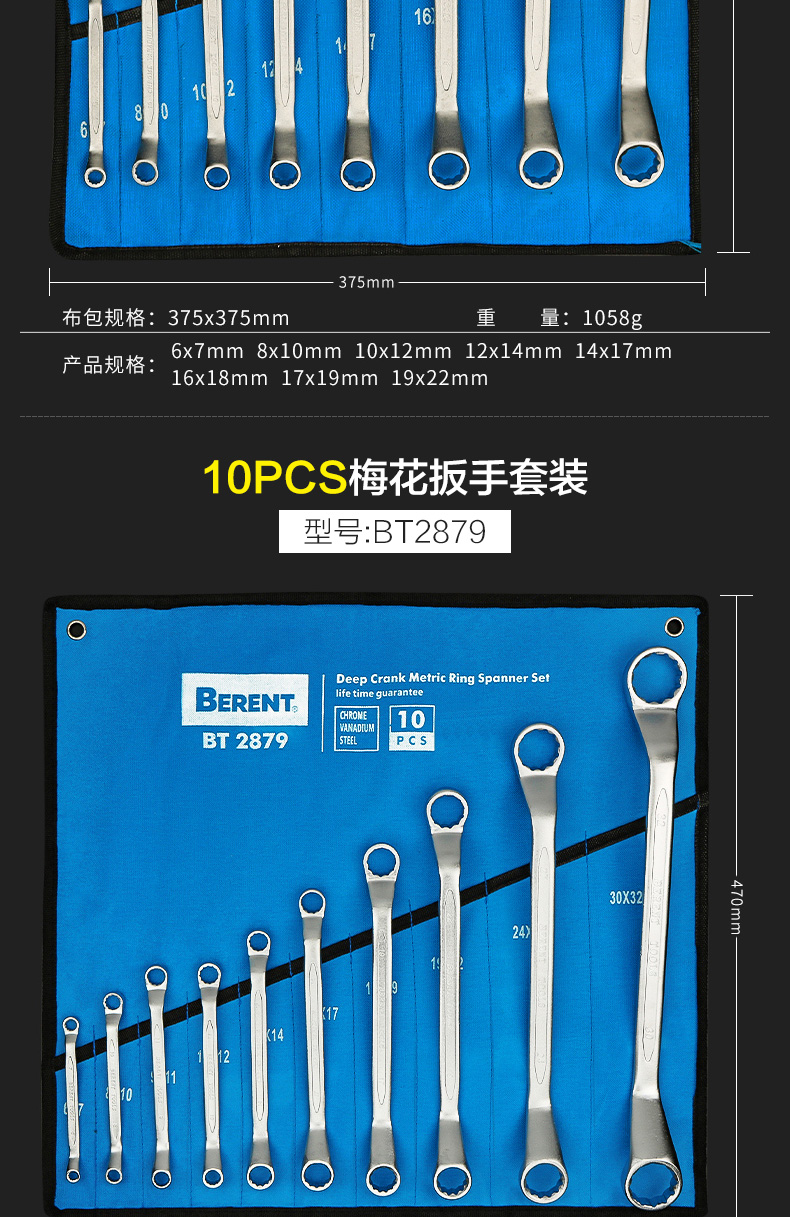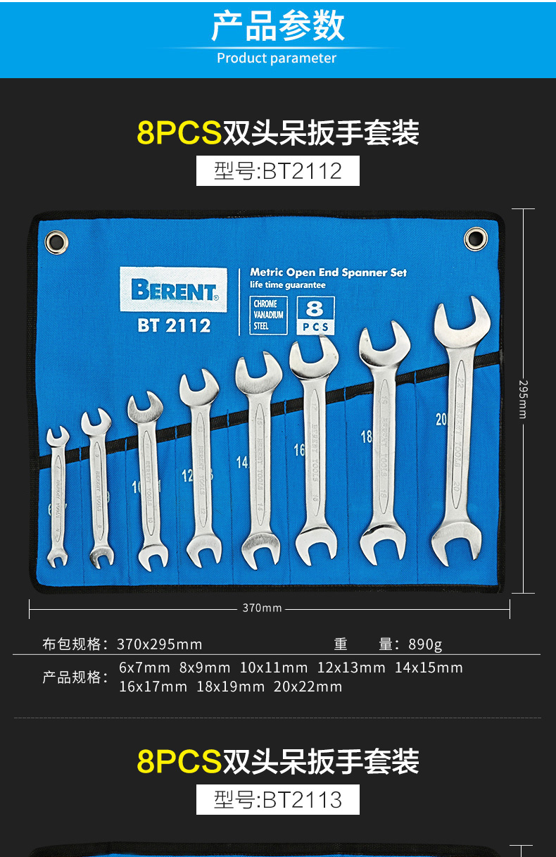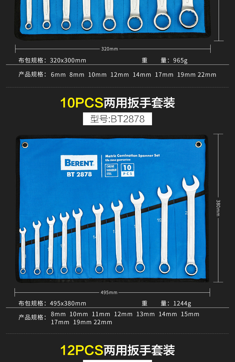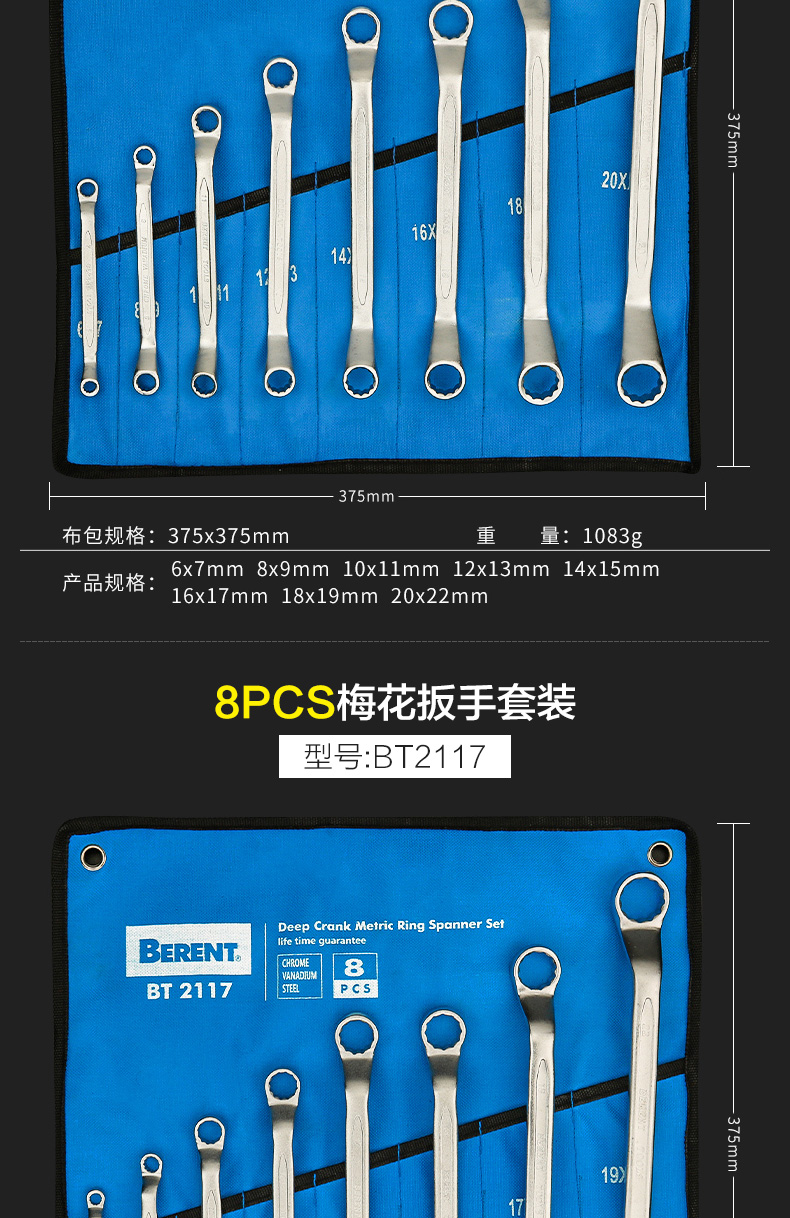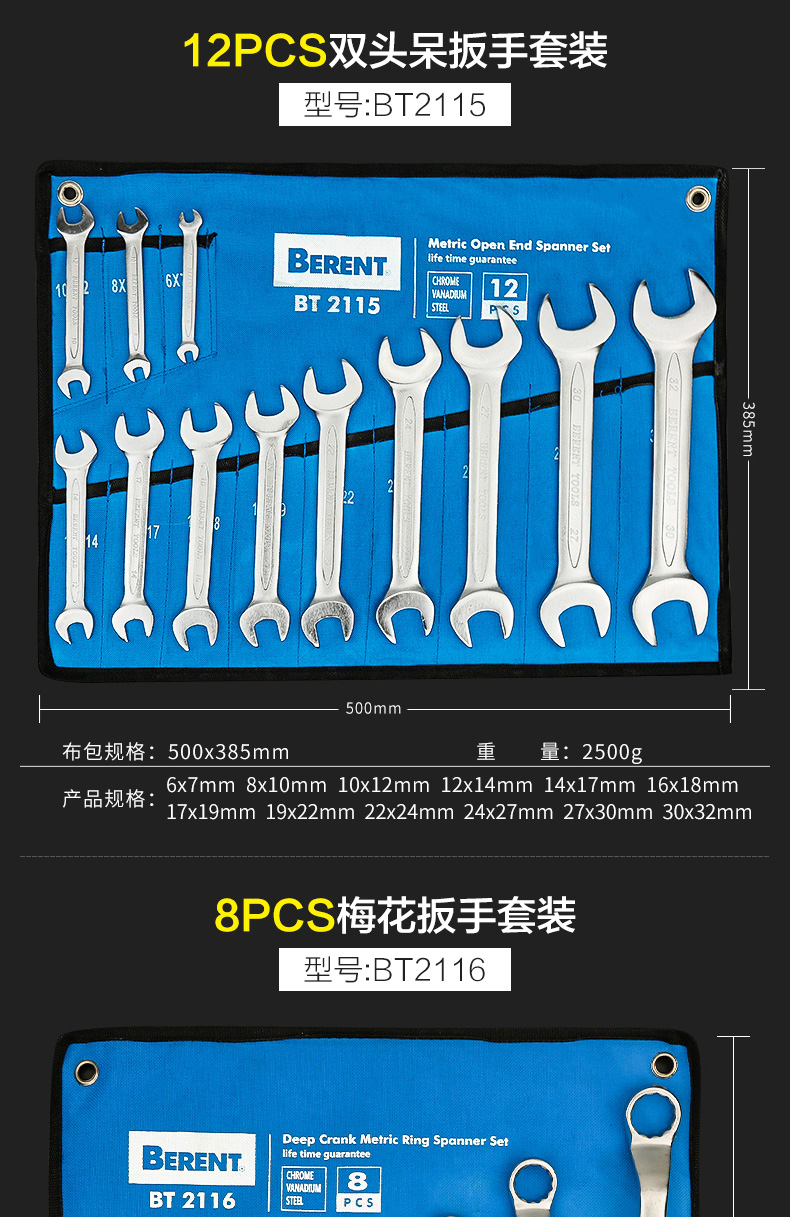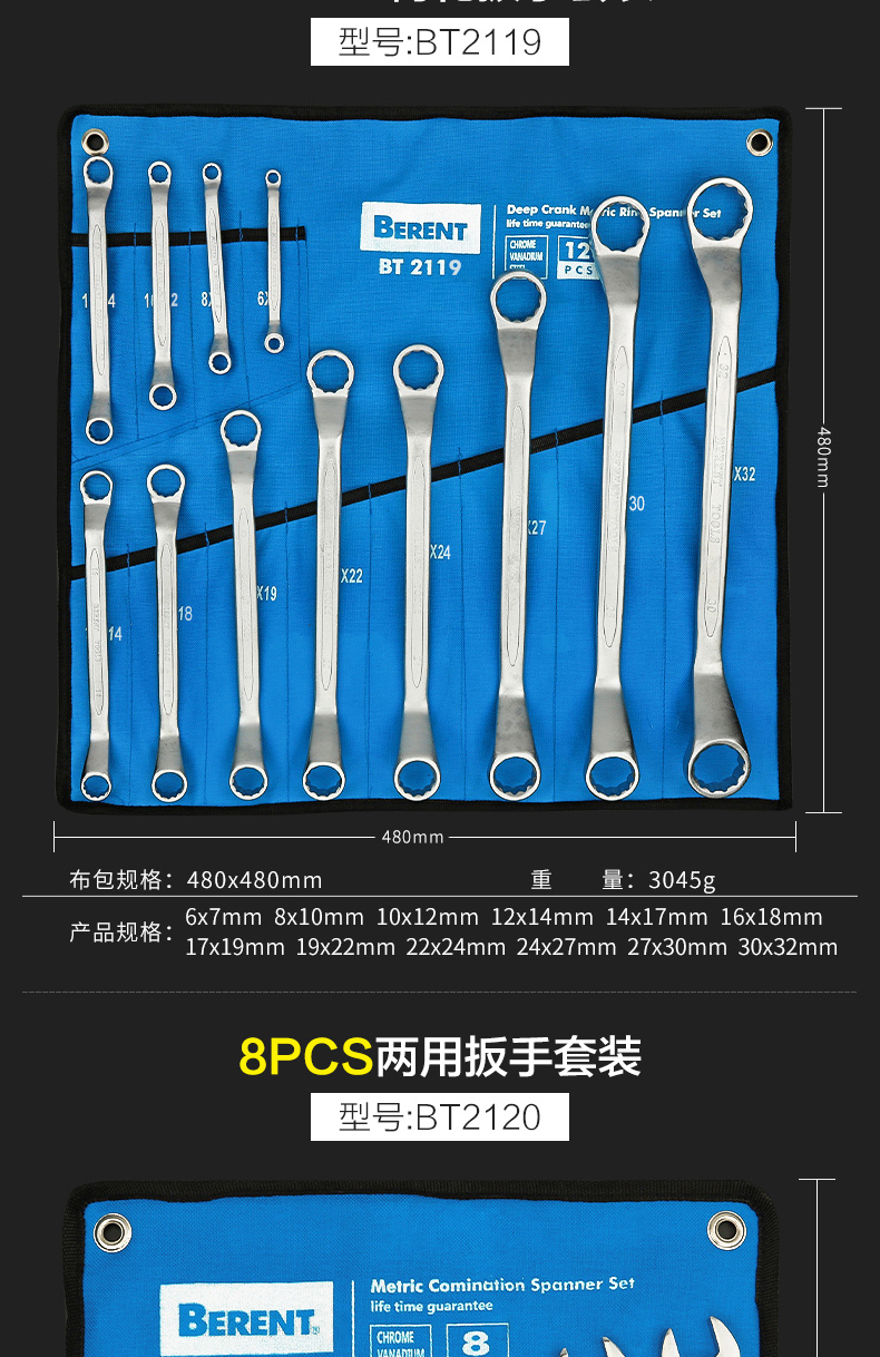 Conjunto de herramientas de llave abierta de ciruela industrial, llave ciega, herramienta de hardware de doble uso, llave de trinquete grande