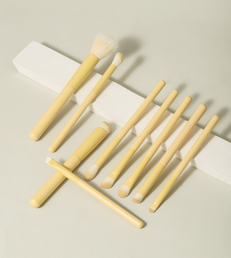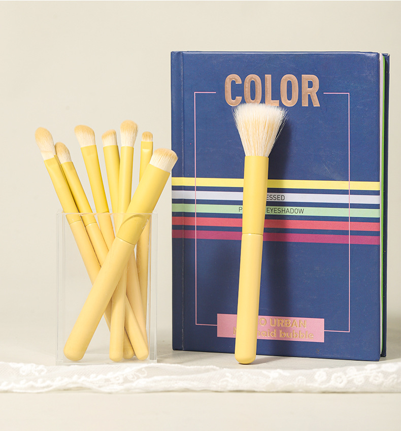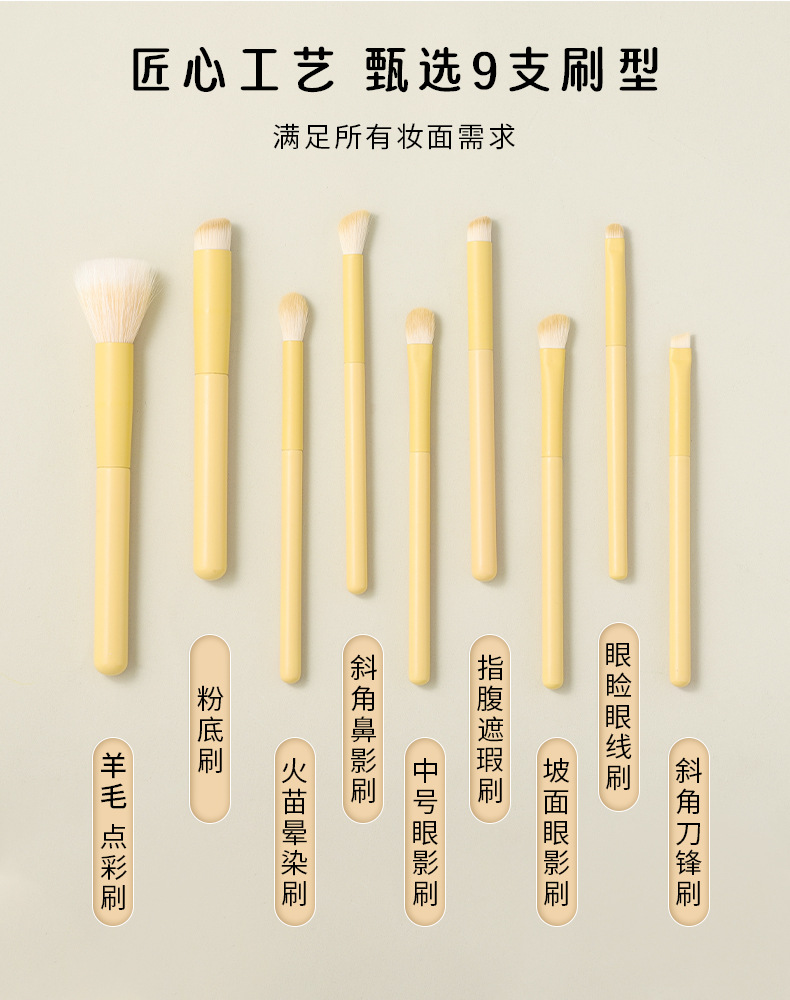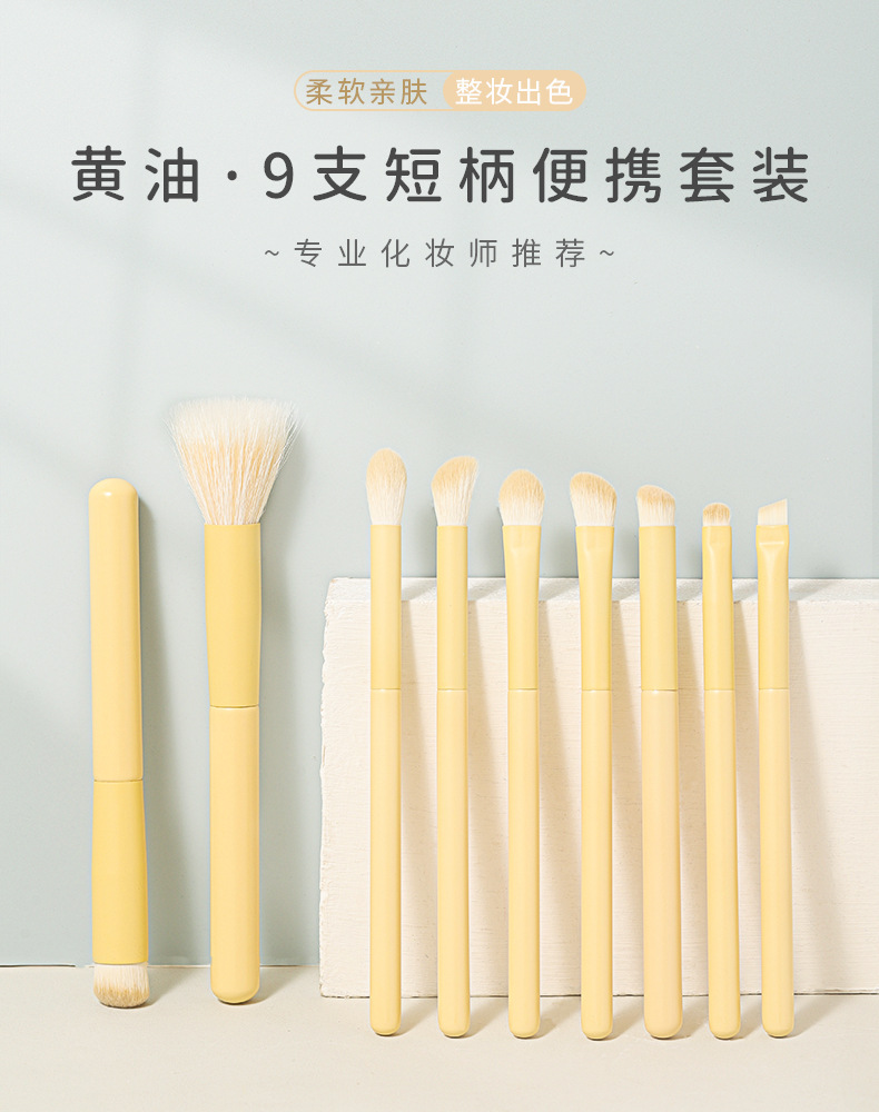 Mantequilla 9 juegos de cepillo de maquillaje de cepillo de rubor portátil juego de cepillo de sombras de ojos súper suave, cepillo de sombras de ojos, cepillo de pelo animal