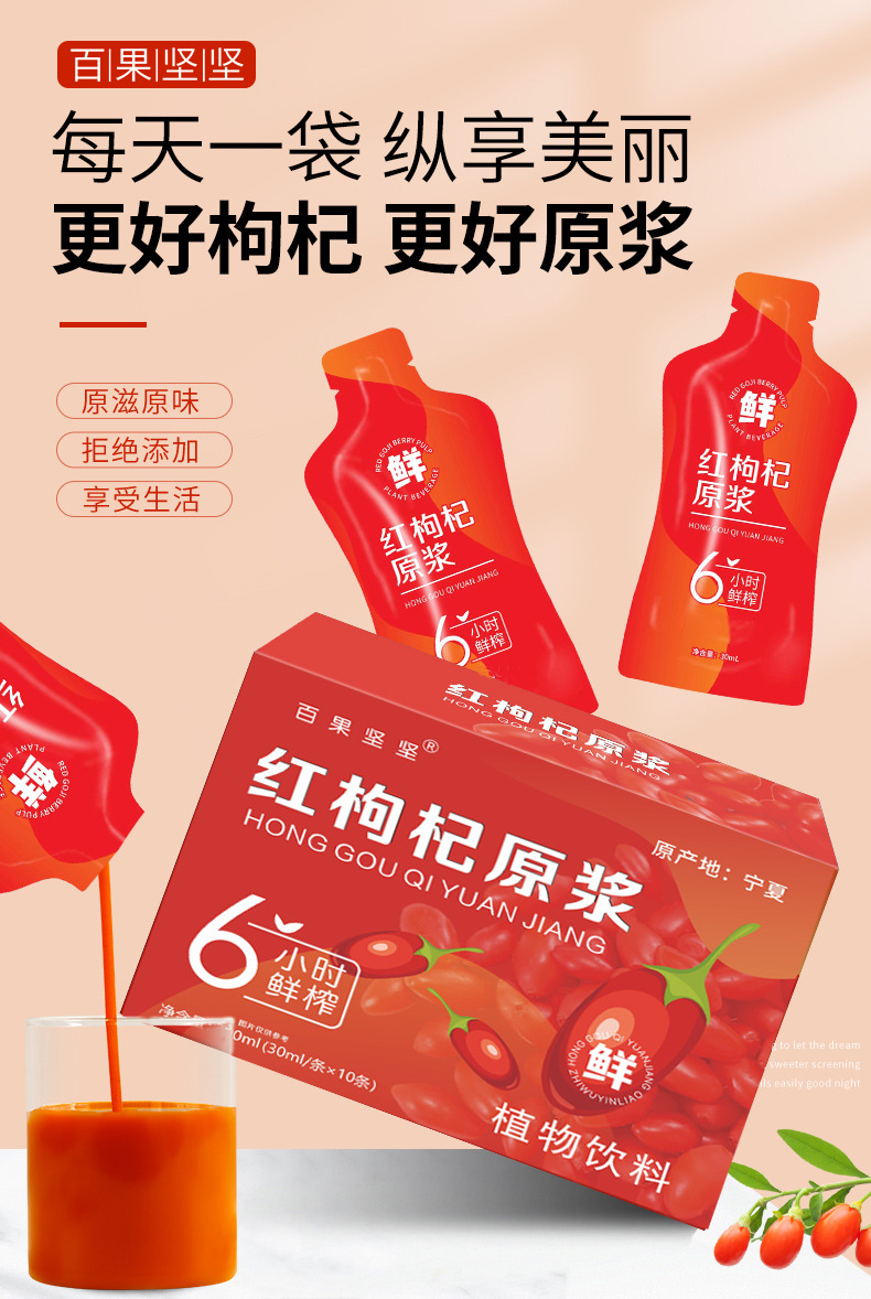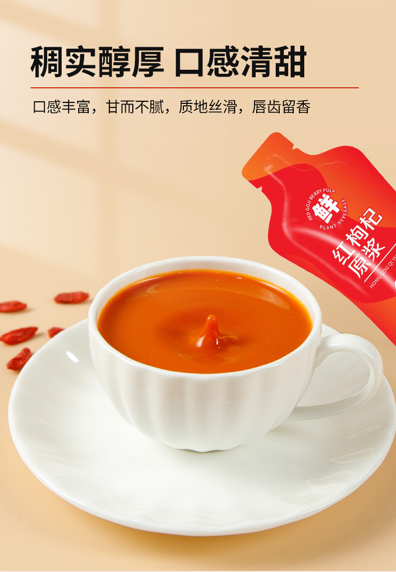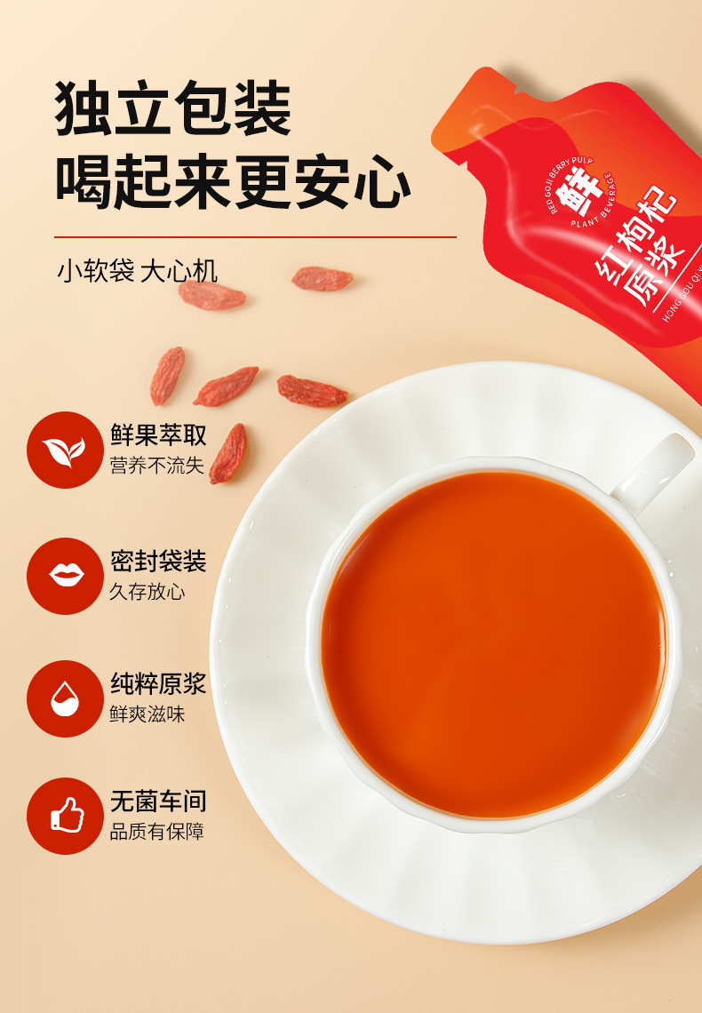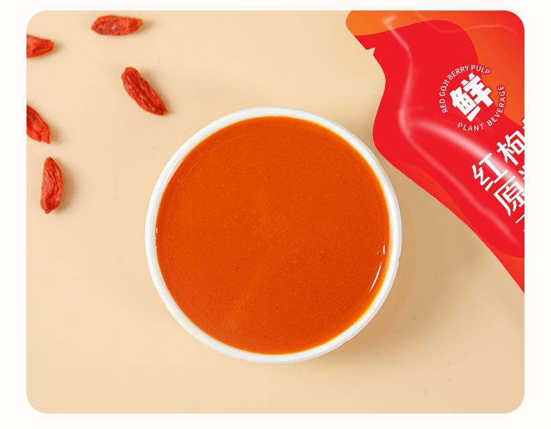 Bebida de pulpa cruda de wolfberry rojo 300mloem bolsa de procesamiento en caja Ningxia wolfberry líquido original pulpa fresca de wolfberry rojo