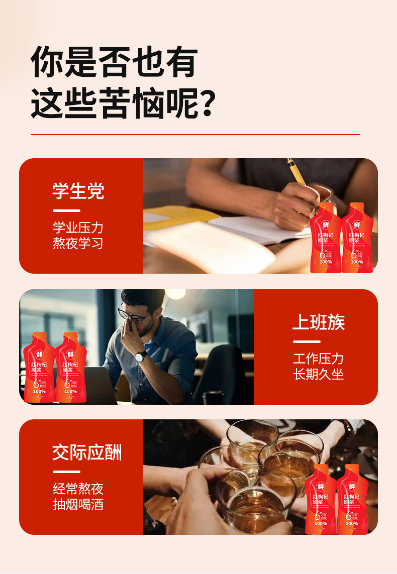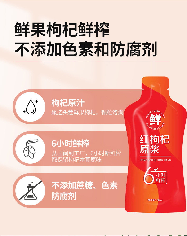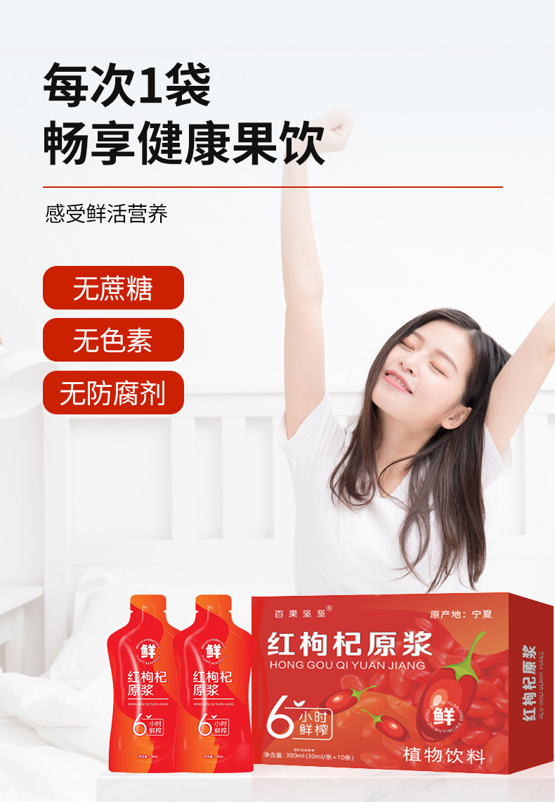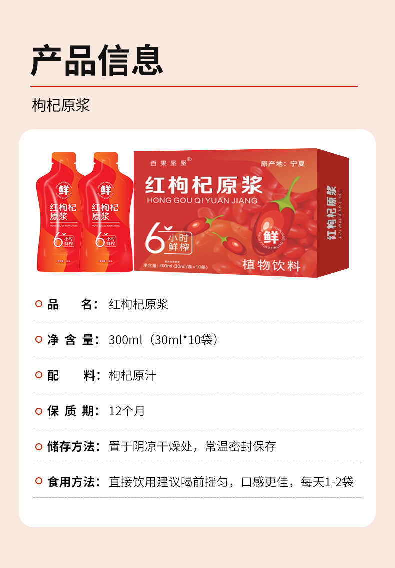 Bebida de pulpa cruda de wolfberry rojo 300mloem bolsa de procesamiento en caja Ningxia wolfberry líquido original pulpa fresca de wolfberry rojo