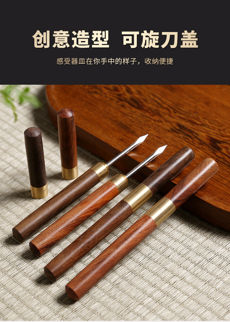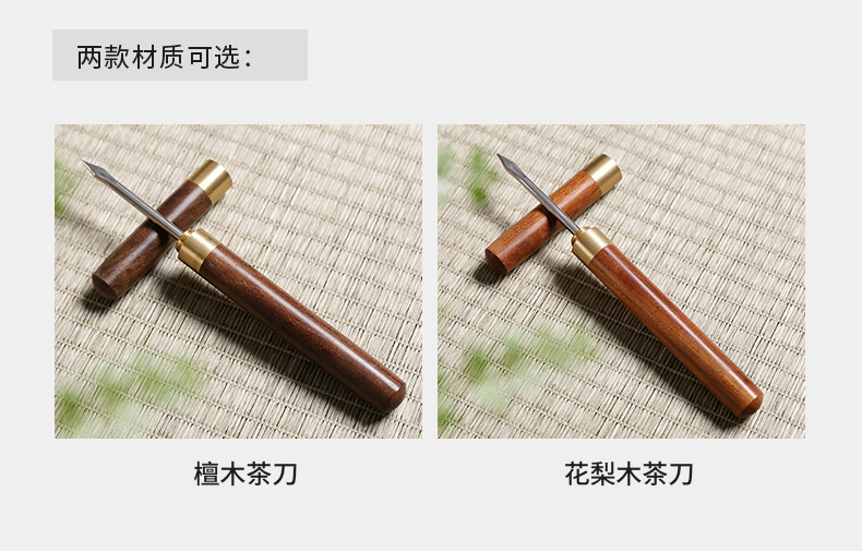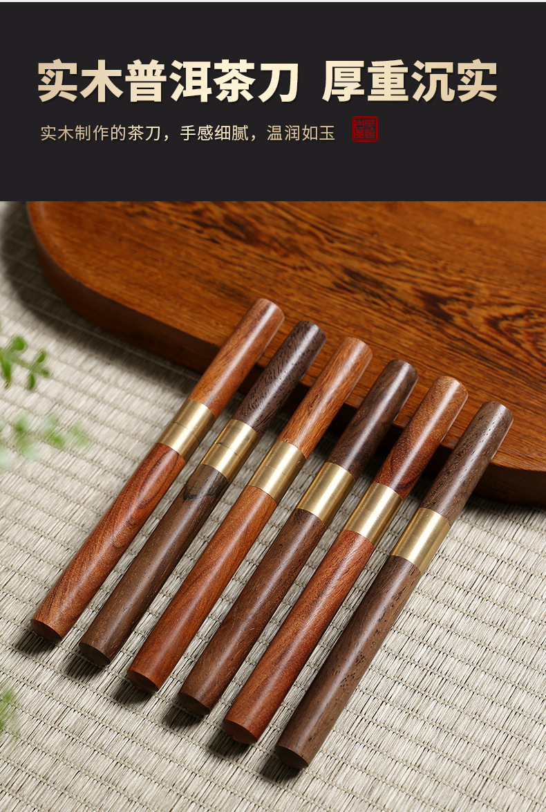 Los pequeños fabricantes de cuchillos de té Pu 'er de sándalo negro pueden grabar el logotipo de los accesorios de la ceremonia del té al por mayor.