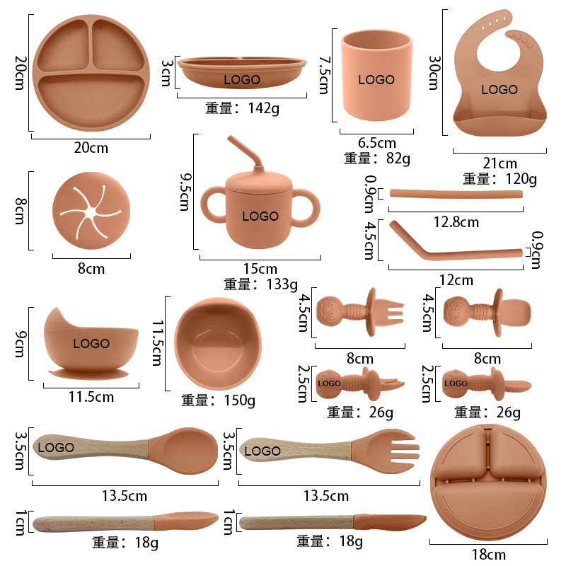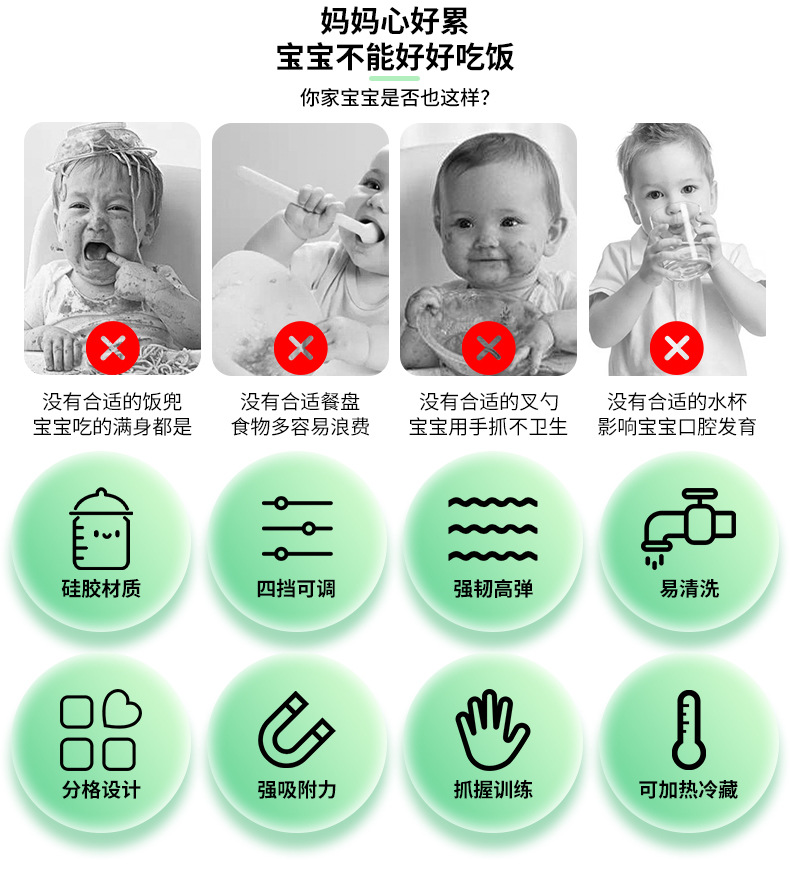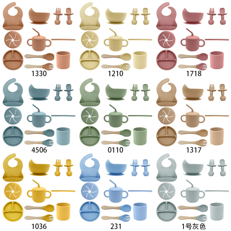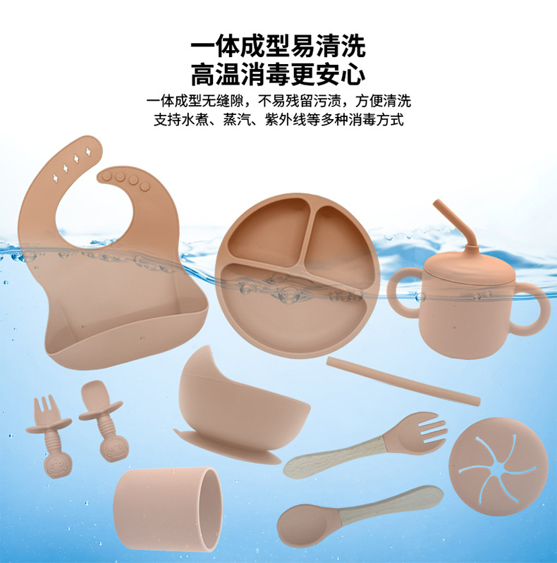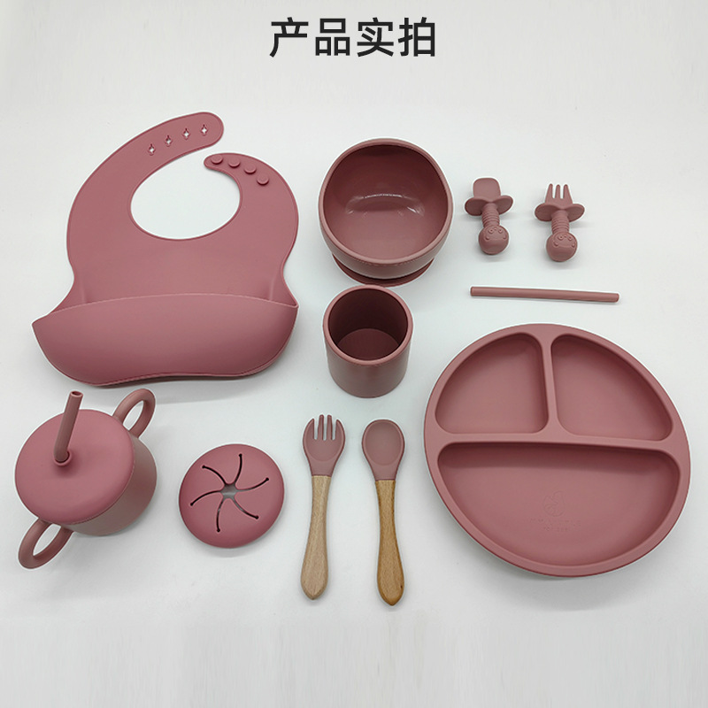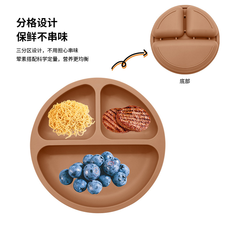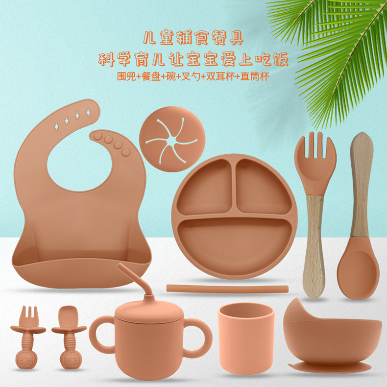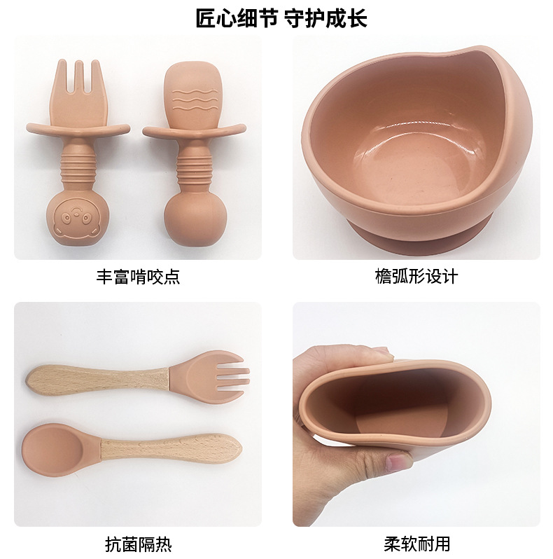 Vajilla de alimentos complementarios para madres, bebés y niños, juego de platos de silicona, juego de platos de alimentos complementarios resistentes a la caída, alimentación de bebés, tenedores, cucharas y platos divididos.