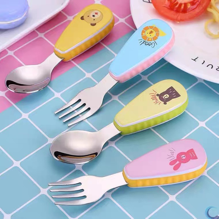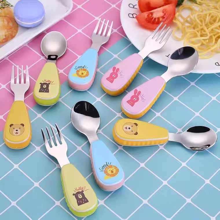 304 tenedores y cucharas de acero inoxidable para alimentar a los niños cucharas para entrenar a los niños para comer de forma autónoma cucharas para niños juegos de vajilla complementaria