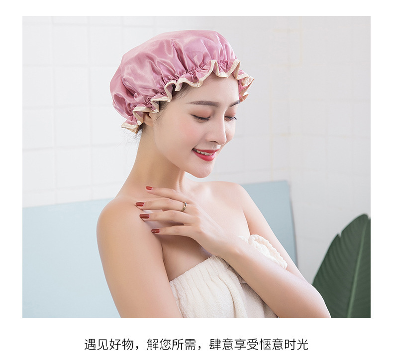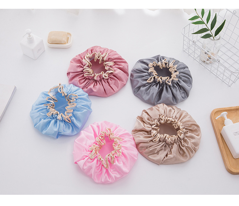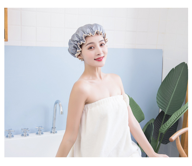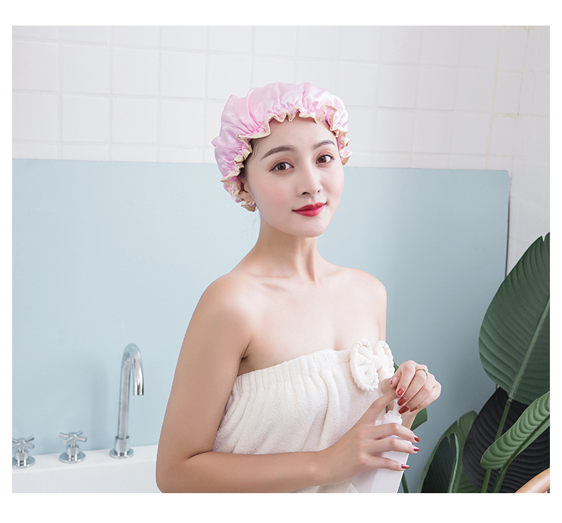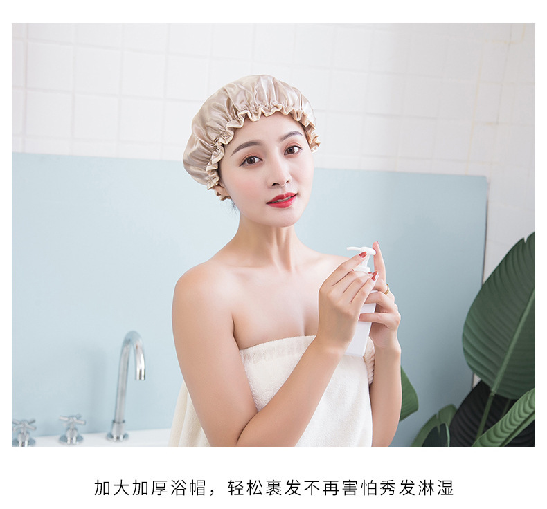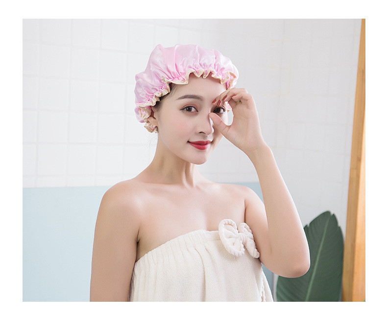 Baño de doble capa impermeable doméstico pe engrosado sombrero de lavado de cabello antiaceite sombrero de baño sombrero de baño mayorista femenino