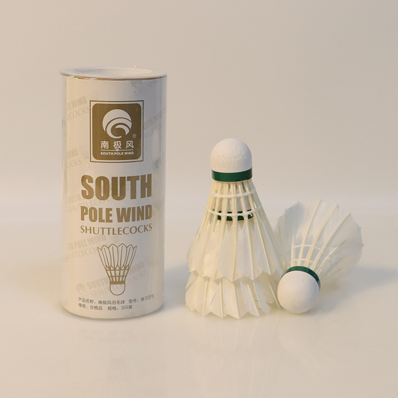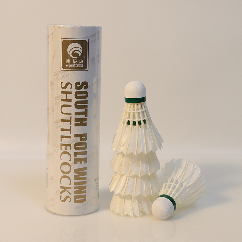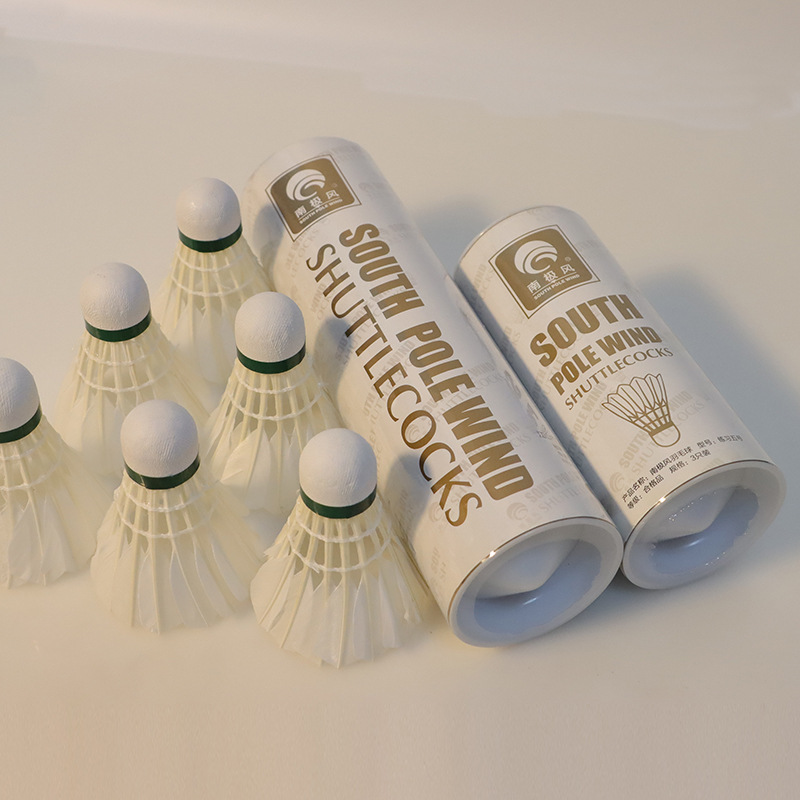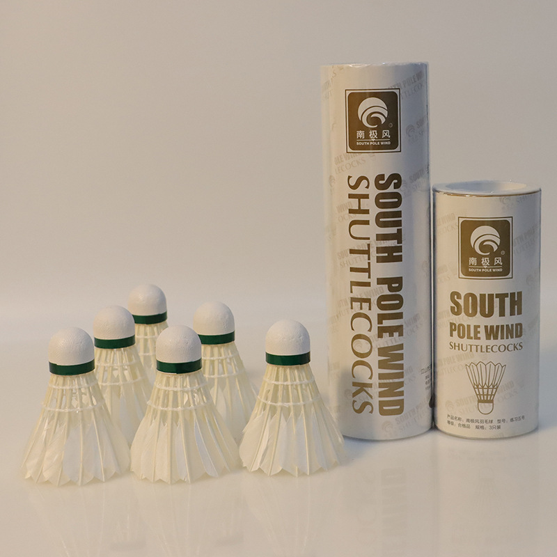 El fabricante vende al por mayor plumas de ganso de alta calidad de Bádminton de viento antártico, que pueden jugar 12 / 6 / 3 con estudiantes para entrenar Bádminton en el supermercado.