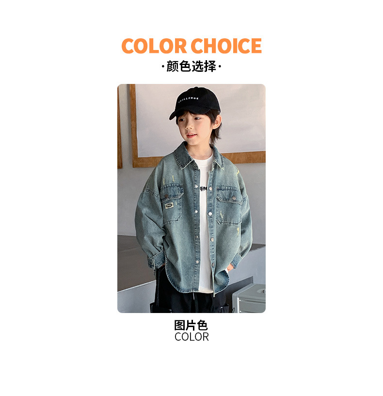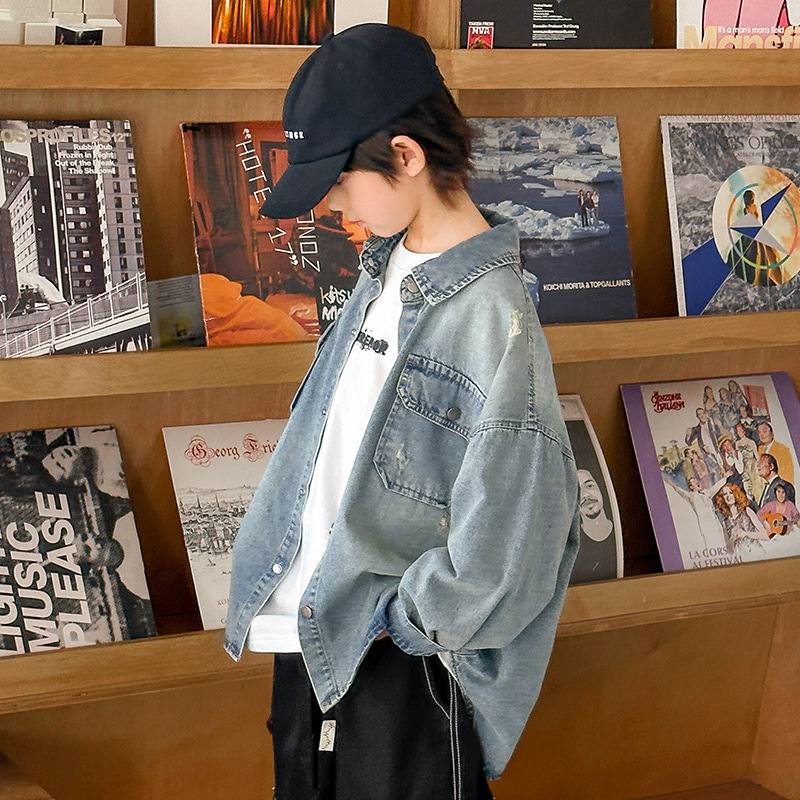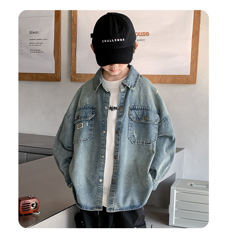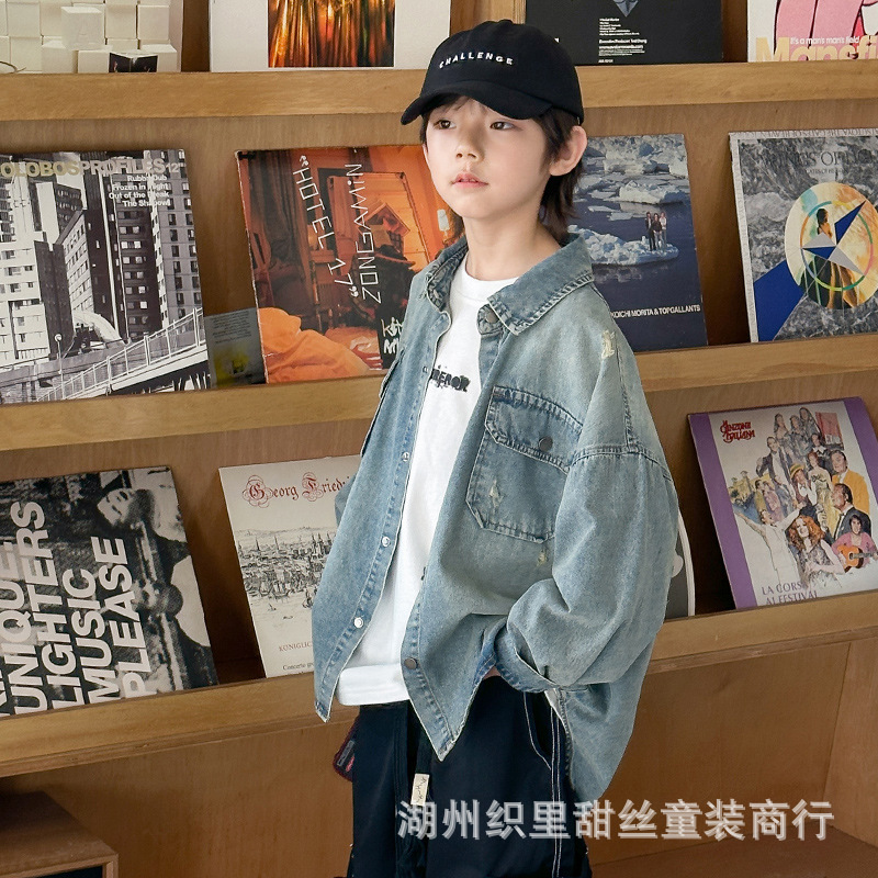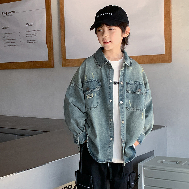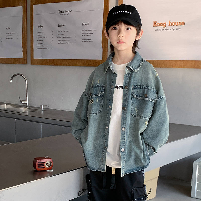 Ropa vaquero para niños de primavera chaqueta vaquero para niños de mediana edad y grandes nuevos niños de primavera y otoño ropa vaquero personalizada para niños de primavera suave y delgada fuera de la marea