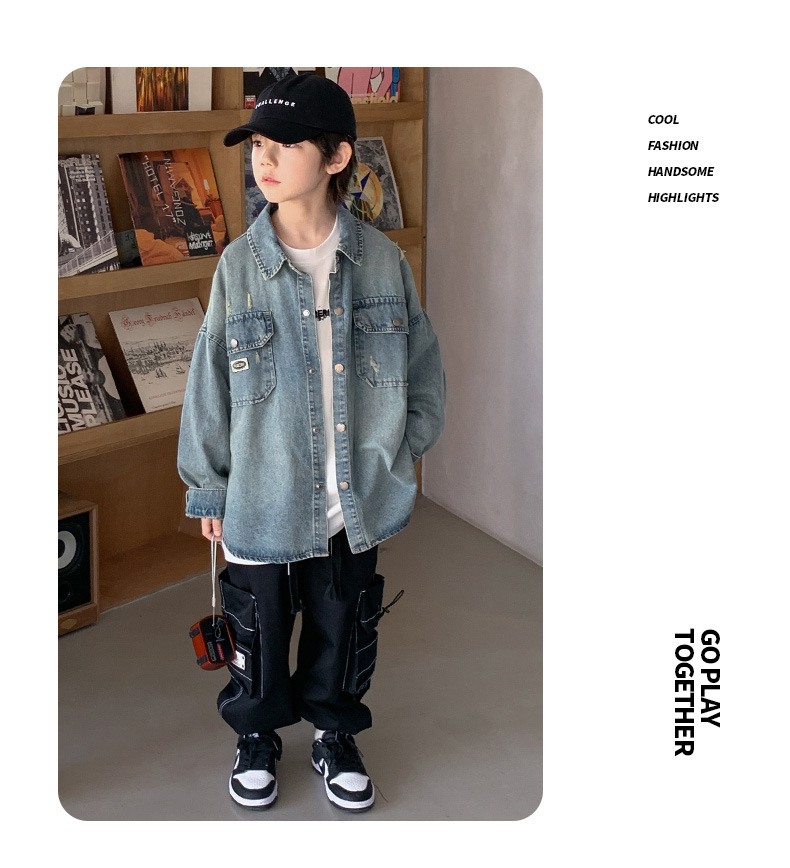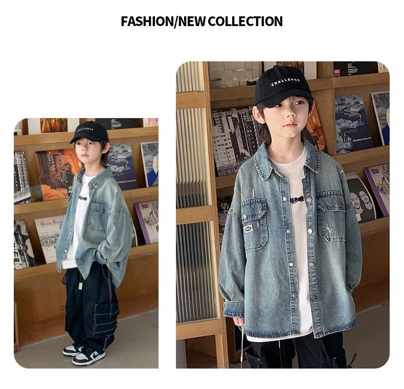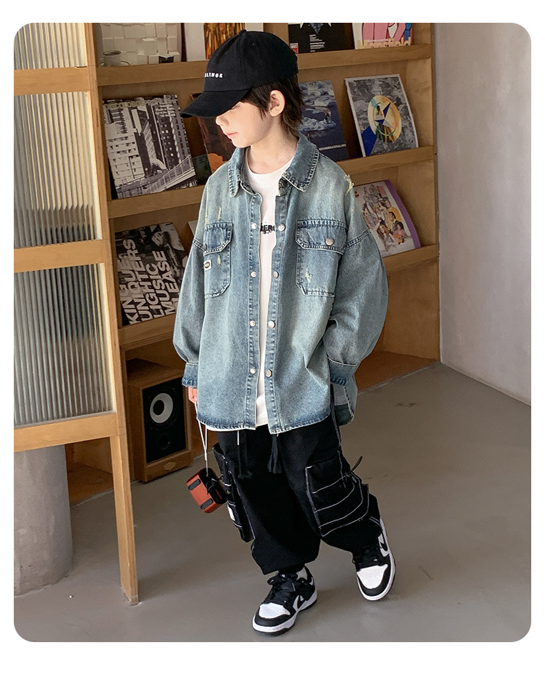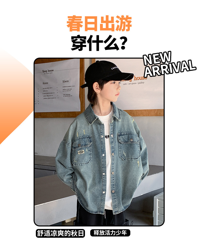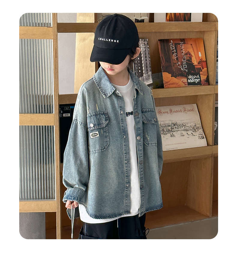Ropa vaquero para niños de primavera chaqueta vaquero para niños de mediana edad y grandes nuevos niños de primavera y otoño ropa vaquero personalizada para niños de primavera suave y delgada fuera de la marea