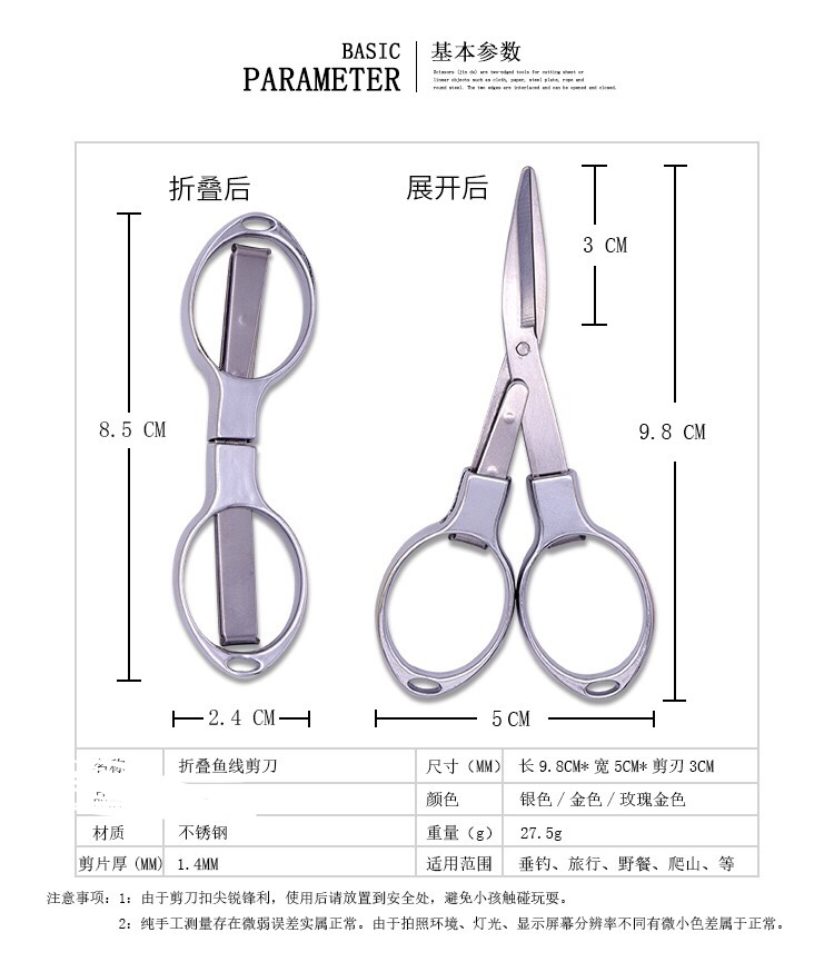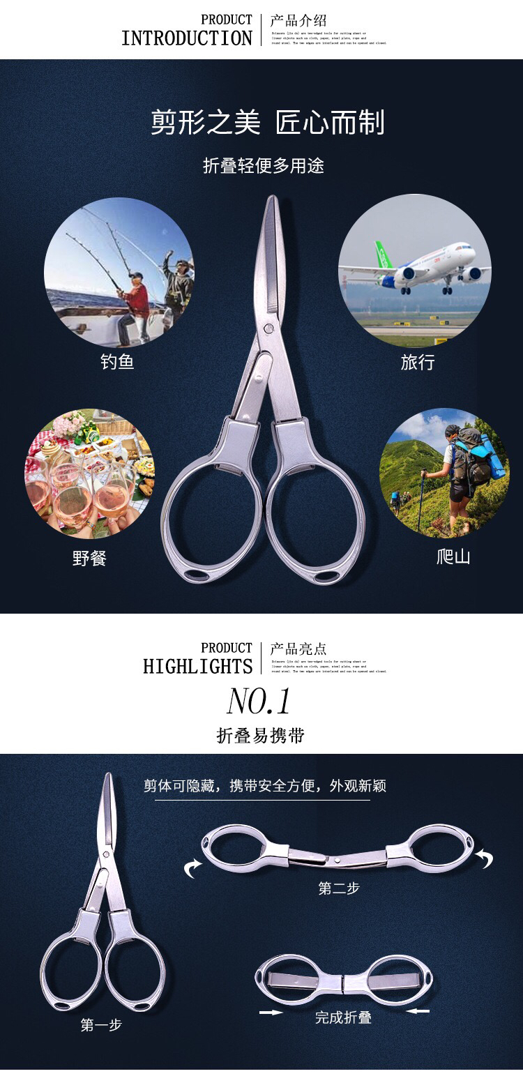 Tijeras plegables de hilo de pescado, aparejos de pesca retráctiles de acero inoxidable, tijeras de 8 caracteres para facilitar el transporte de tijeras de pesca de viaje