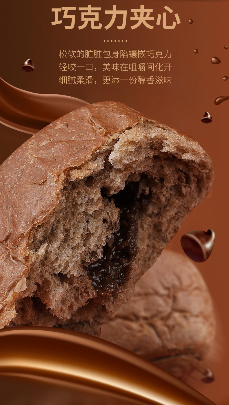 Pulpa explosiva sucia, bollos sucios, pan rasgado a mano, bocadillos de desayuno, bocadillos casuales, bollos de Europa blandos con sándwich de chocolate