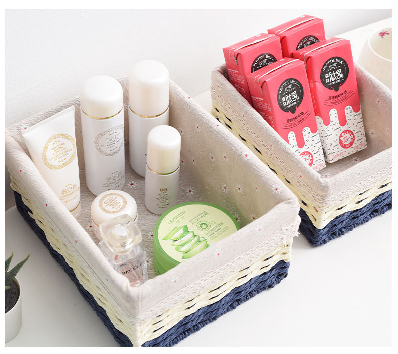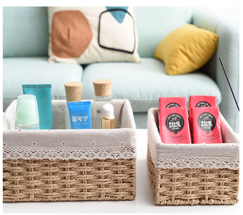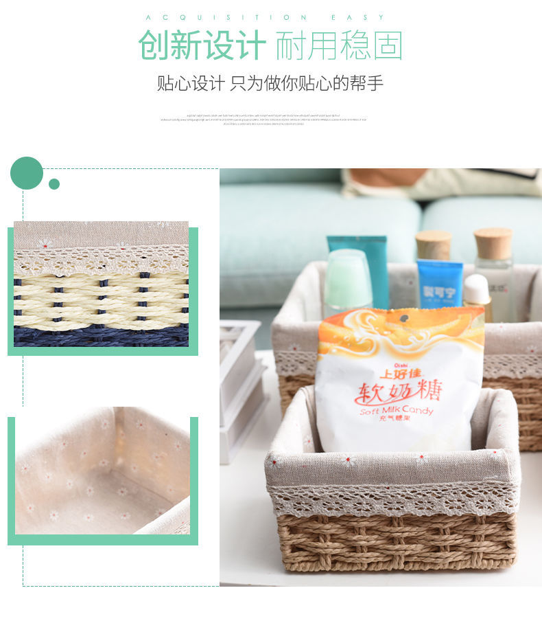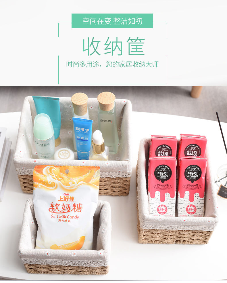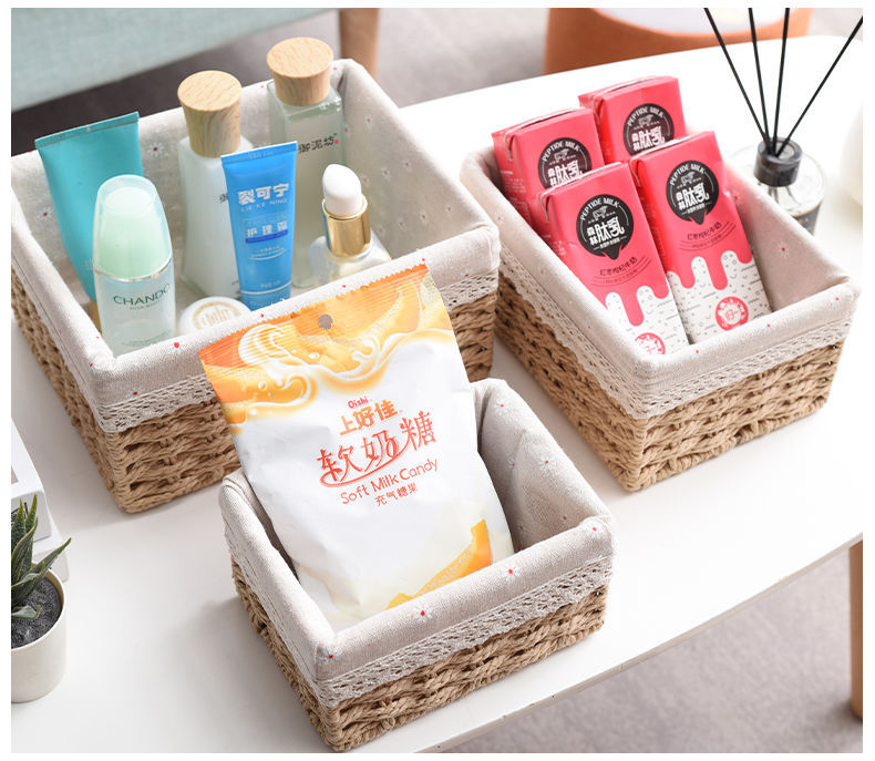 Caja de almacenamiento caja de tejido de paja Mesa de tela tejida escombros llave de juguete caja de almacenamiento de cosméticos caja de almacenamiento cesta de bocadillos
