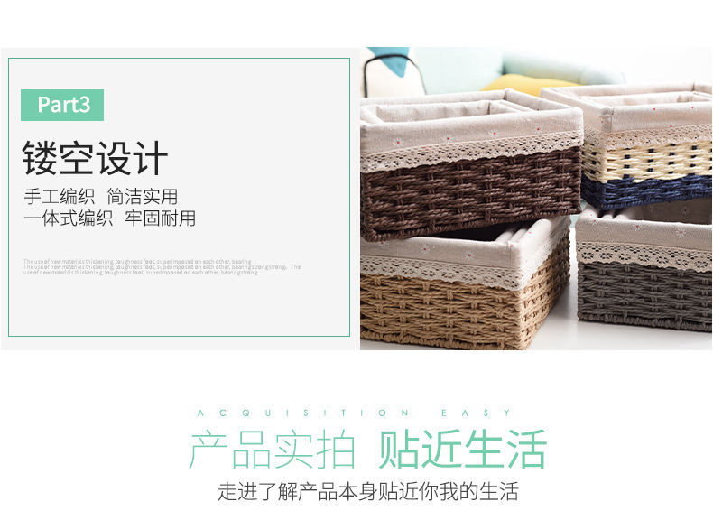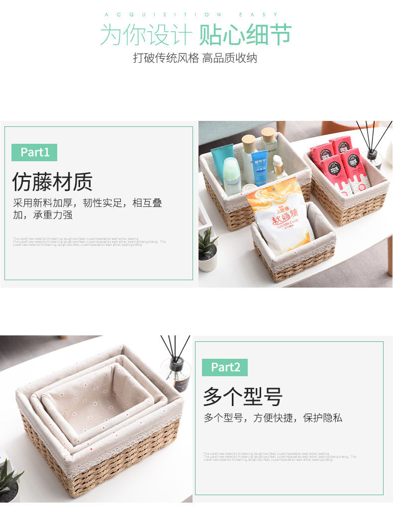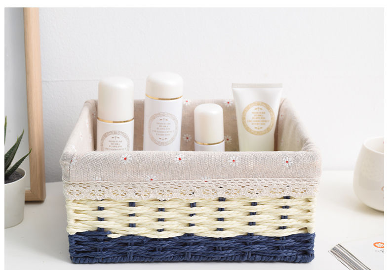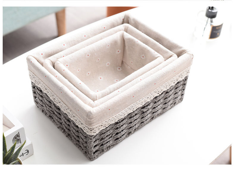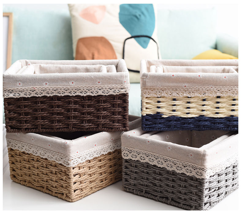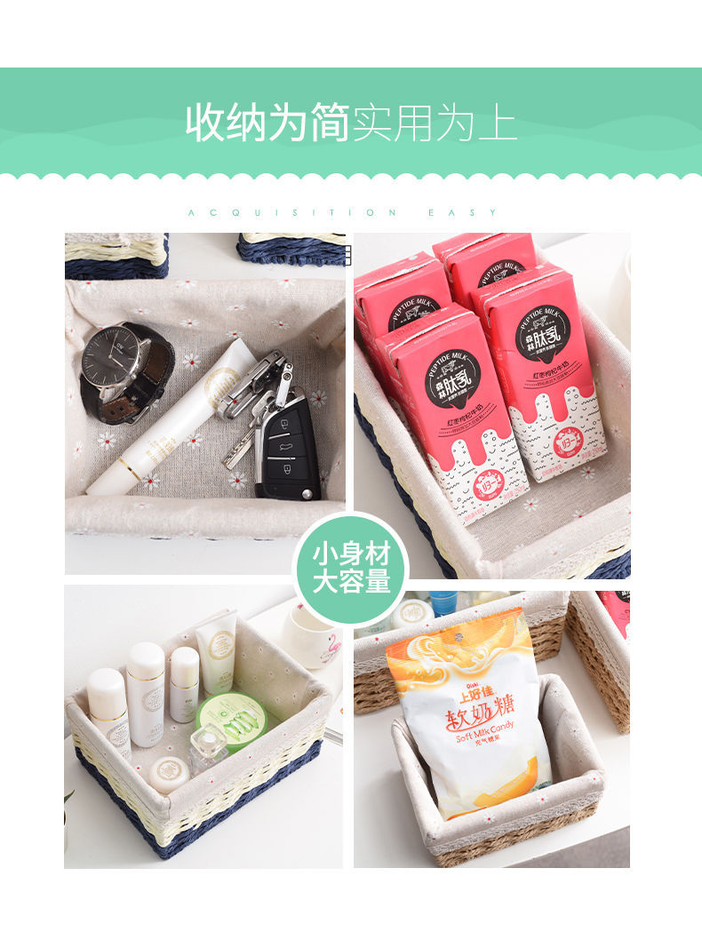 Caja de almacenamiento caja de tejido de paja Mesa de tela tejida escombros llave de juguete caja de almacenamiento de cosméticos caja de almacenamiento cesta de bocadillos