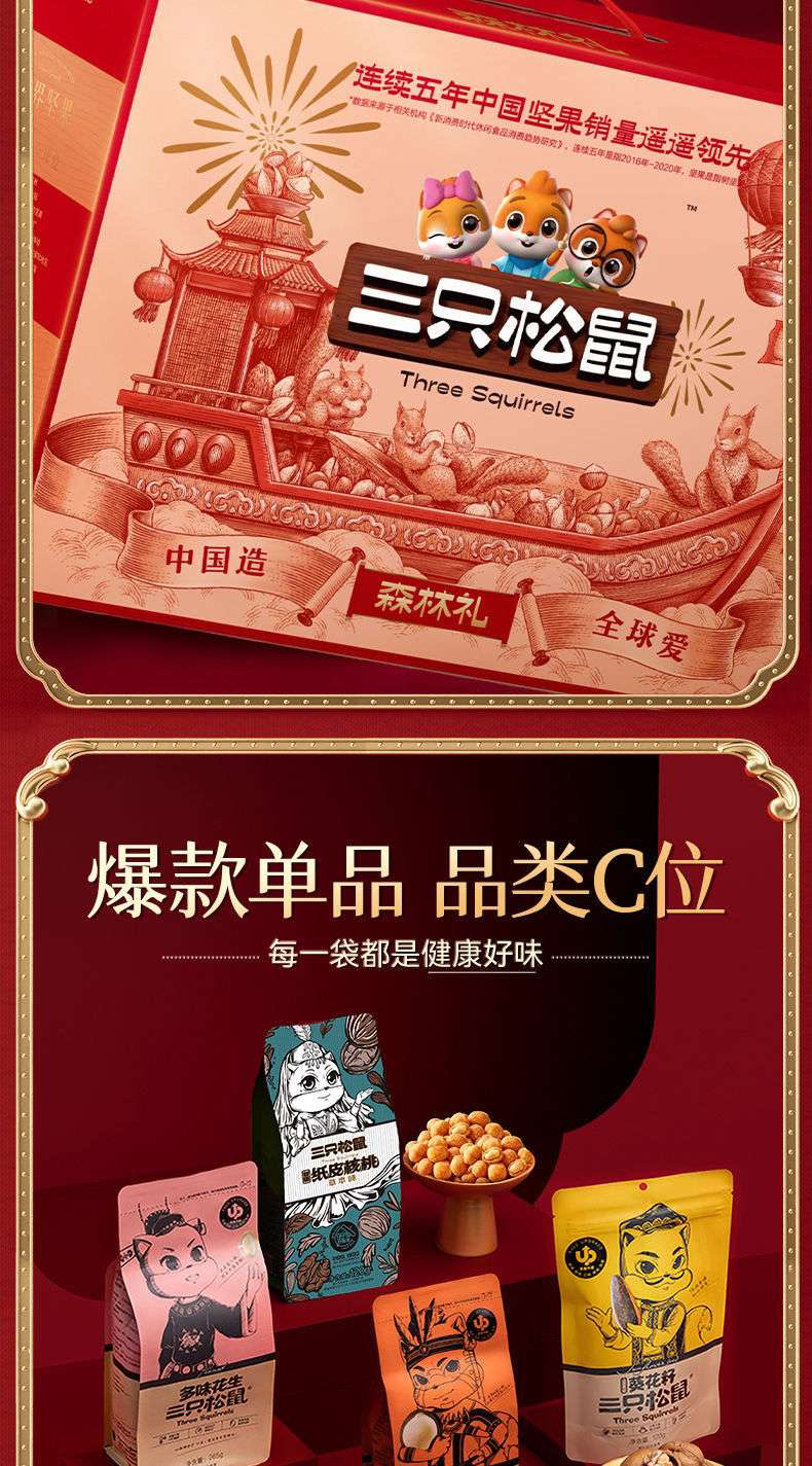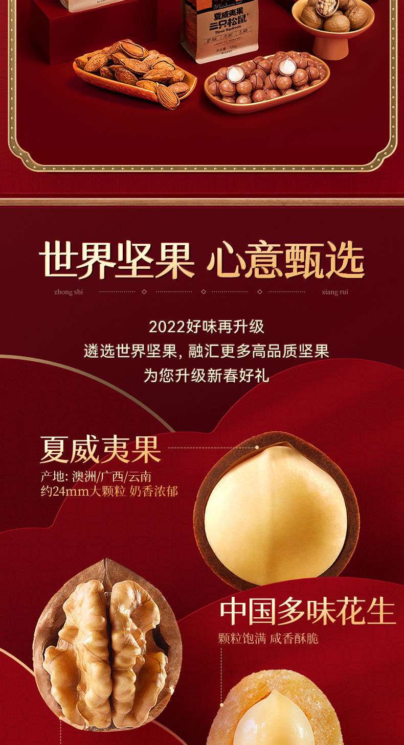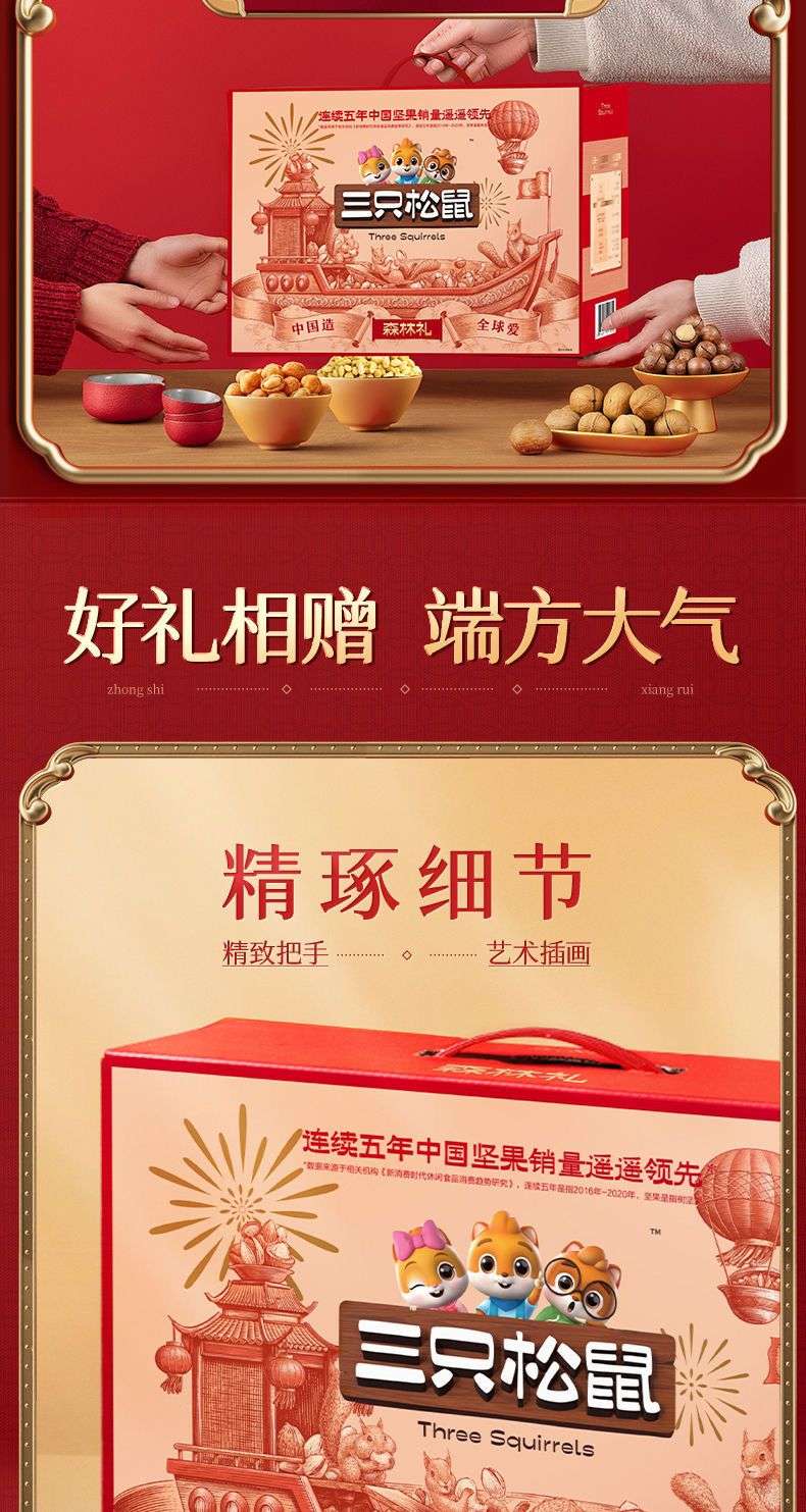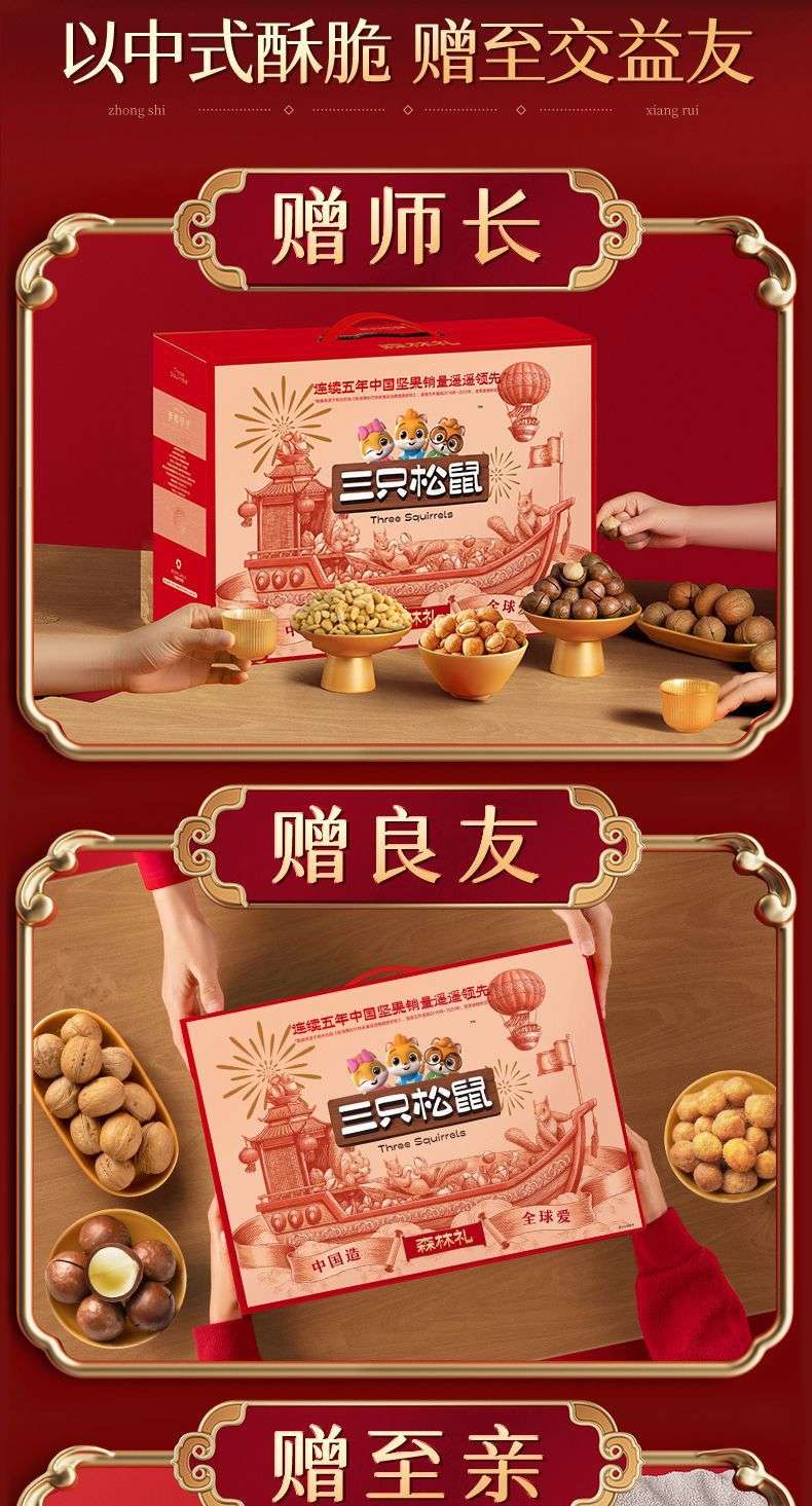 Tres paquetes de regalo de nueces de ardilla mezclados con bocadillos de frutas secas saludables, cajas de regalo en cajas completas para regalos de año nuevo para ancianos