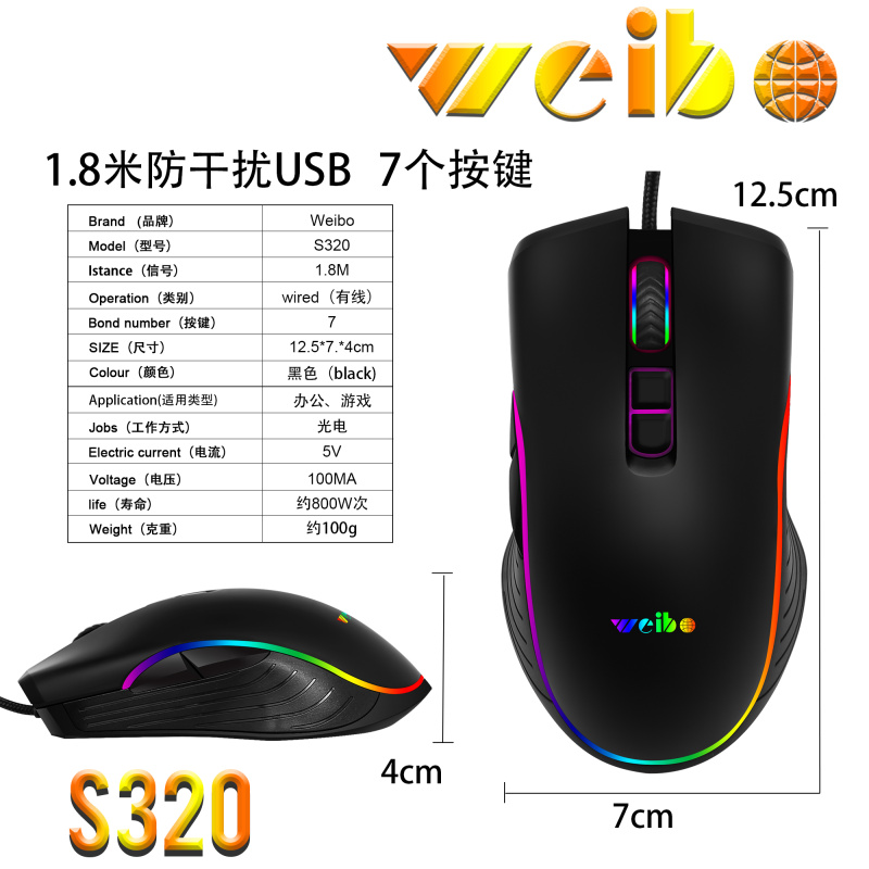 Weibo weibo come pollo 7d juego ratón agrava retroiluminación juego deslumbrante computadora portátil de escritorio